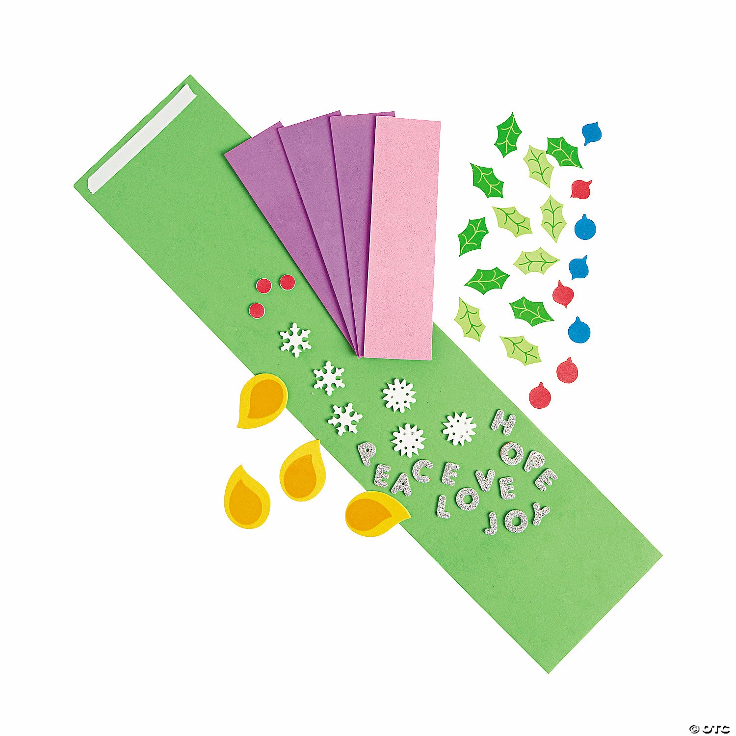 The Advent Foam Candle Stand Up Wreath is a fun arts and crafts project for kids. It comes with sets of colorful self-adhesive foam pieces that can make 12 different foam wreaths. Kids can add sparkling words and colorful ornamentation to personalize their very own wreath. These Christmas wreaths can stand on any flat surface as a homemade holiday decoration. (1 dozen per unit) 7 1/2″ x 17″ diam. Makes 12. Β© OTC