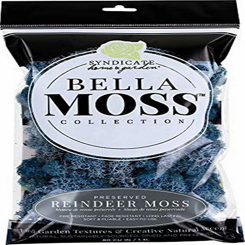 Bella Reindeer Moss is a great, professional quality decorative cover and fill for your next project! Size 80 CU IN. Fade resistant. Color Lavender Blue. All-natural. Uses simulating grass and flora in baskets, vases, and centerpieces. Bella Reindeer Moss is a cover and fill product for many arts and crafts projects. This moss is lavender blue in color and comes in an 80 cu in package. It can be used to simulate grass and flora in baskets, vases, centerpieces, and so much more!