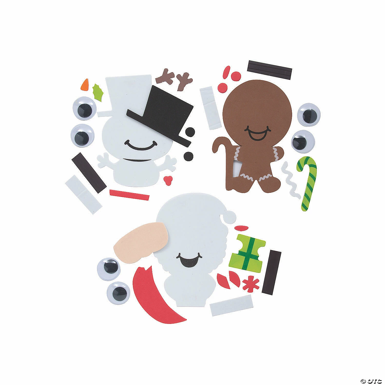 Just when you thought Christmas characters couldnβt get any cuter, here comes these adorable, big-eyed characters! Santa, a gingerbread man and a snowman are cute, funny Christmas characters kids can put together with this simple, peel-and-stick craft kit in the classroom or at a holiday party. Kids can display the finished character on a metal surface since these include magnets or they can gift the finished magnets to a loved one as a Christmas gift. Includes self-adhesive foam pieces and plastic googly eyes 3 1/2″ x 4 1/2″ Makes 12. All craft kits are pre-packaged for individual use. Magnets are packaged separately. Do not discard. Kits include instructions. Β© OTC