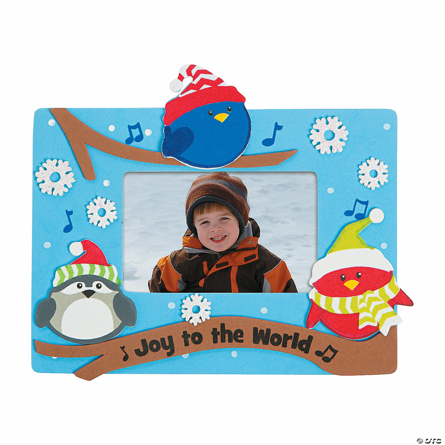 The sweet little Christmas songbirds on this DIY picture frame proudly proclaim “Joy to the World”! Add a photo to this simple winter craft for kids to make a touching handmade gift or Christmas decoration! A fun classroom craft or Sunday school activity this cool winter season. Includes a 6 1/2″ x 4 3/4″ frame with 3 1/2″ x 2 1/4″ photo space. Self-adhesive foam. Makes 12. ยฉ OTC