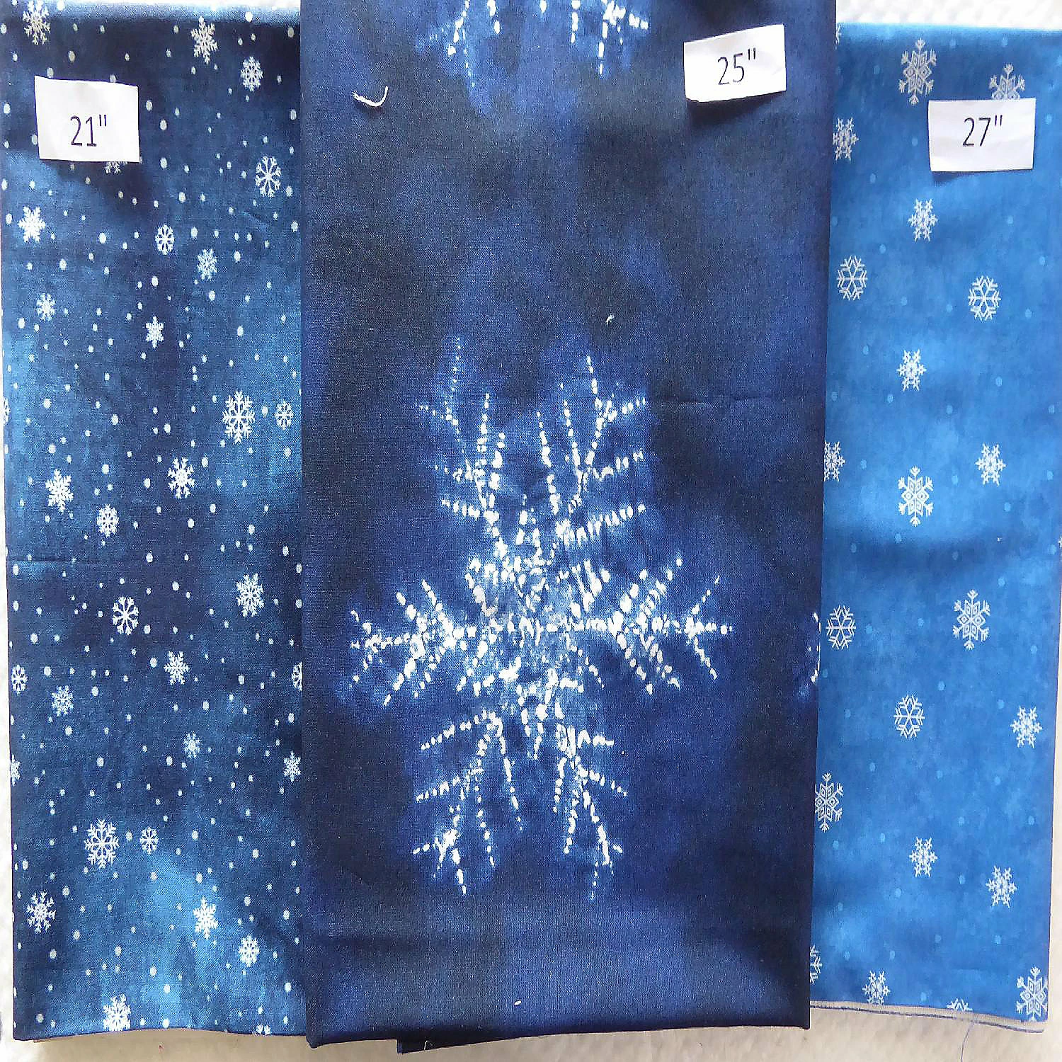 Our last of the best Collection Winter Snowflakes on Blue – 3 fabrics- Total of all the fabrics is 2 Yards 1 Inches. See the Picture for the individual measurements of each Fabric. Each one is 44 inches wide. 100 percent Premium Quality Cotton Fabric.