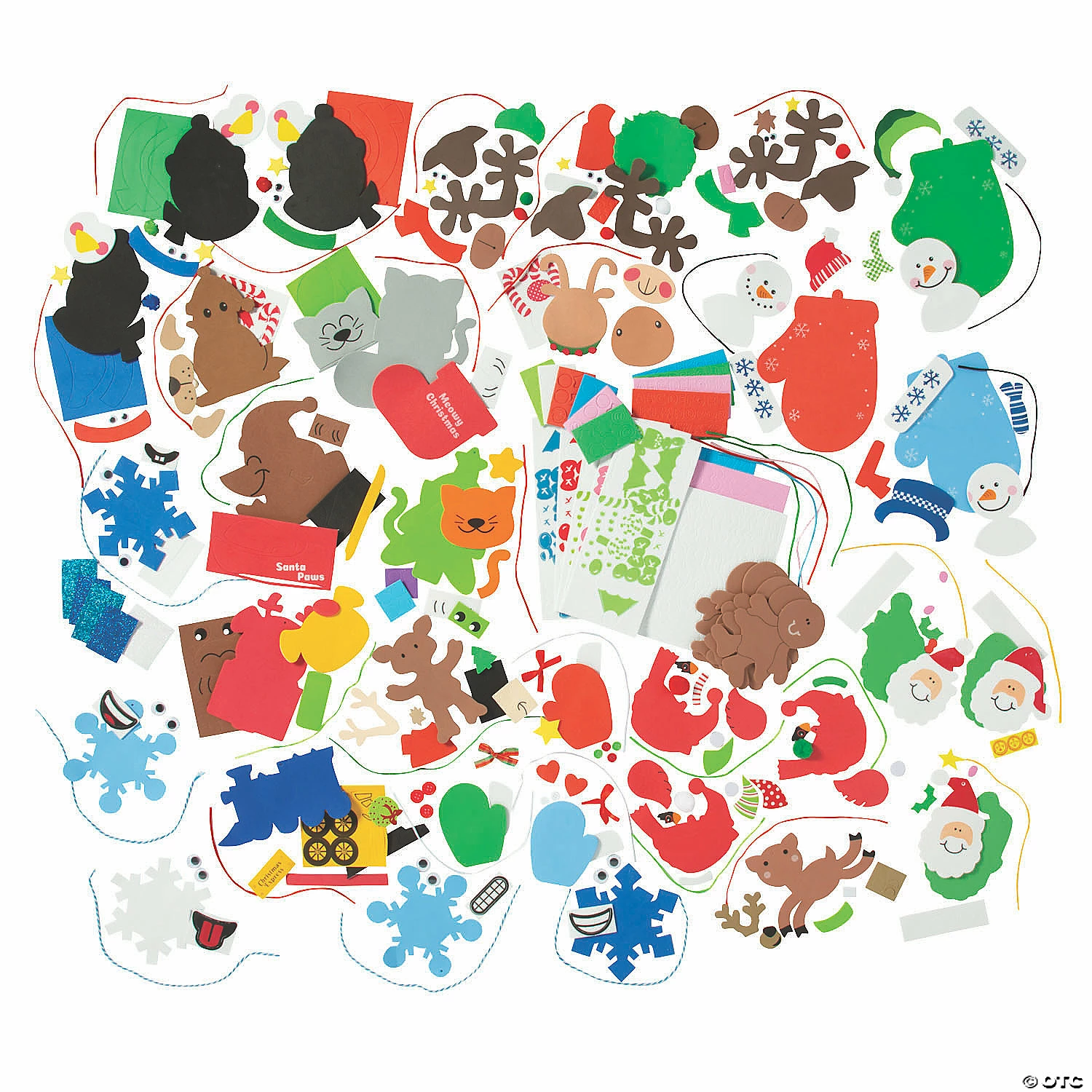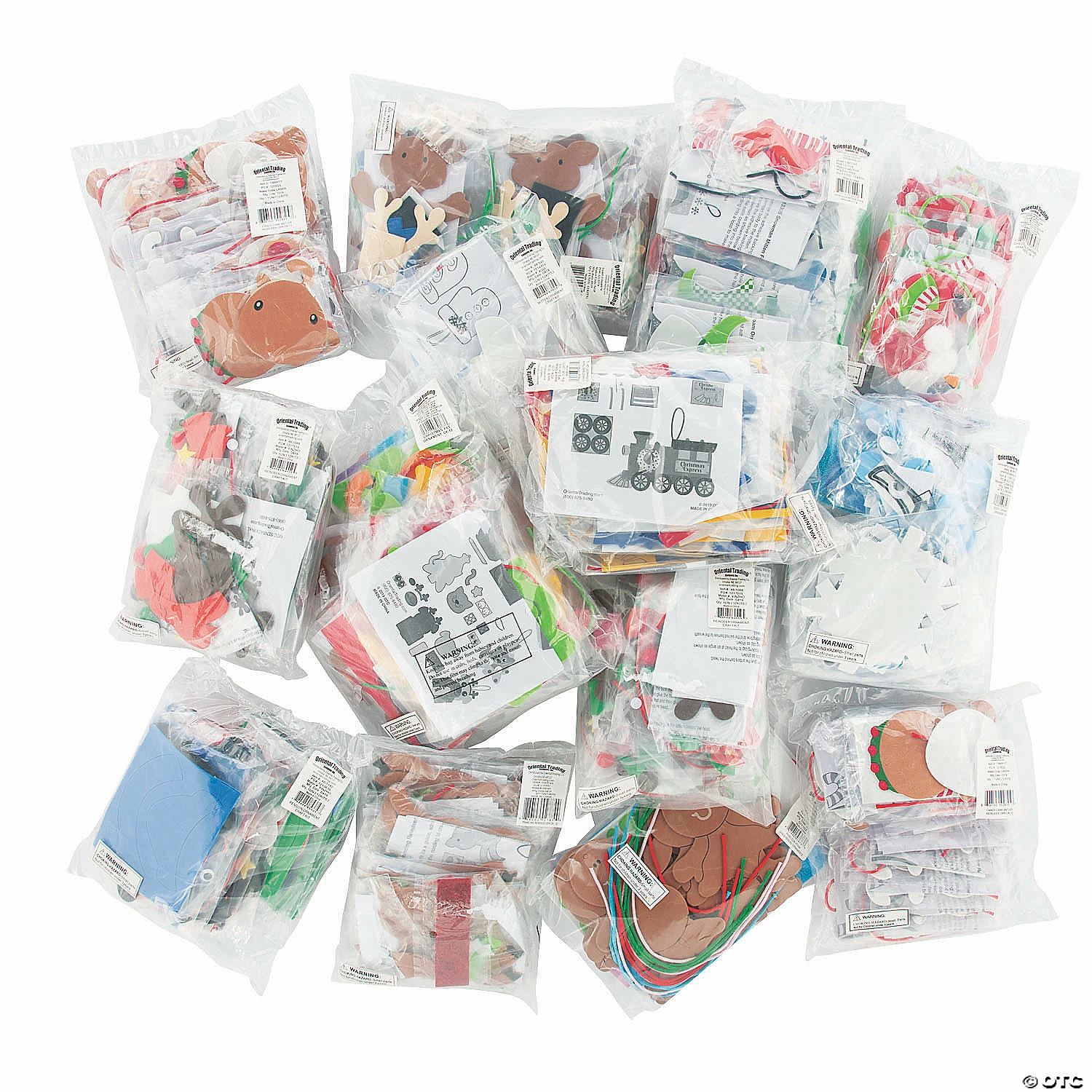 With fun DIY ornaments, this assortment of bulk craft kits is perfect for a large Christmas event that calls for kidsβ activities. If youβre creating Christmas goody bags or filled stockings for a large group of kids, include one or two of these holiday craft kits in each giveaway pack. These crafts are a mix of self-adhesive pieces and pieces that require some glue, sold separately. Includes 504 total crafts. All craft kit pieces are pre-packaged for individual use. Kits include instructions. Β© OTCβ’ Assortment may vary from crafts that are shown. β’Β Sizes and materials may vary.β’ Some glue required, sold separately.