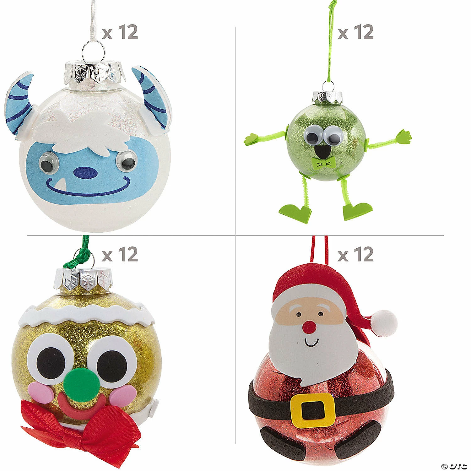 Christmas decorations made by hand add special memories to holiday festivities. These craft kits allow kids to make an ornament they can take home to their family and proudly display on the Christmas tree. Use these crafts at holiday events or as classroom art projects. (48 pcs. per unit) All craft kit pieces are pre-packaged for individual use. Kits include instructions.Includes:β’ 24 Goofy Ornament Decorating Craft Kits (Includes self-adhesive foam pieces, plastic ornaments and satin cording. 2″)β’ 12 Silly Christmas Ball Ornament Craft Kits (Includes plastic ball ornament with glitter coating on the inside, satin cording for hanging, self-adhesive foam pieces, chenille stems and googly eyes. 5 1/4″ x 4 1/4″)β’ 12 Yeti Christmas Bulb Ornament Craft Kits (3 1/4β x 3 1/2β Includes self-adhesive foam pieces, acrylic bulbs, plastic googly eyes and satin cording.)β’ Assortments are subject to change at any time and may vary from picture shown. Substituted items will be similar in nature.