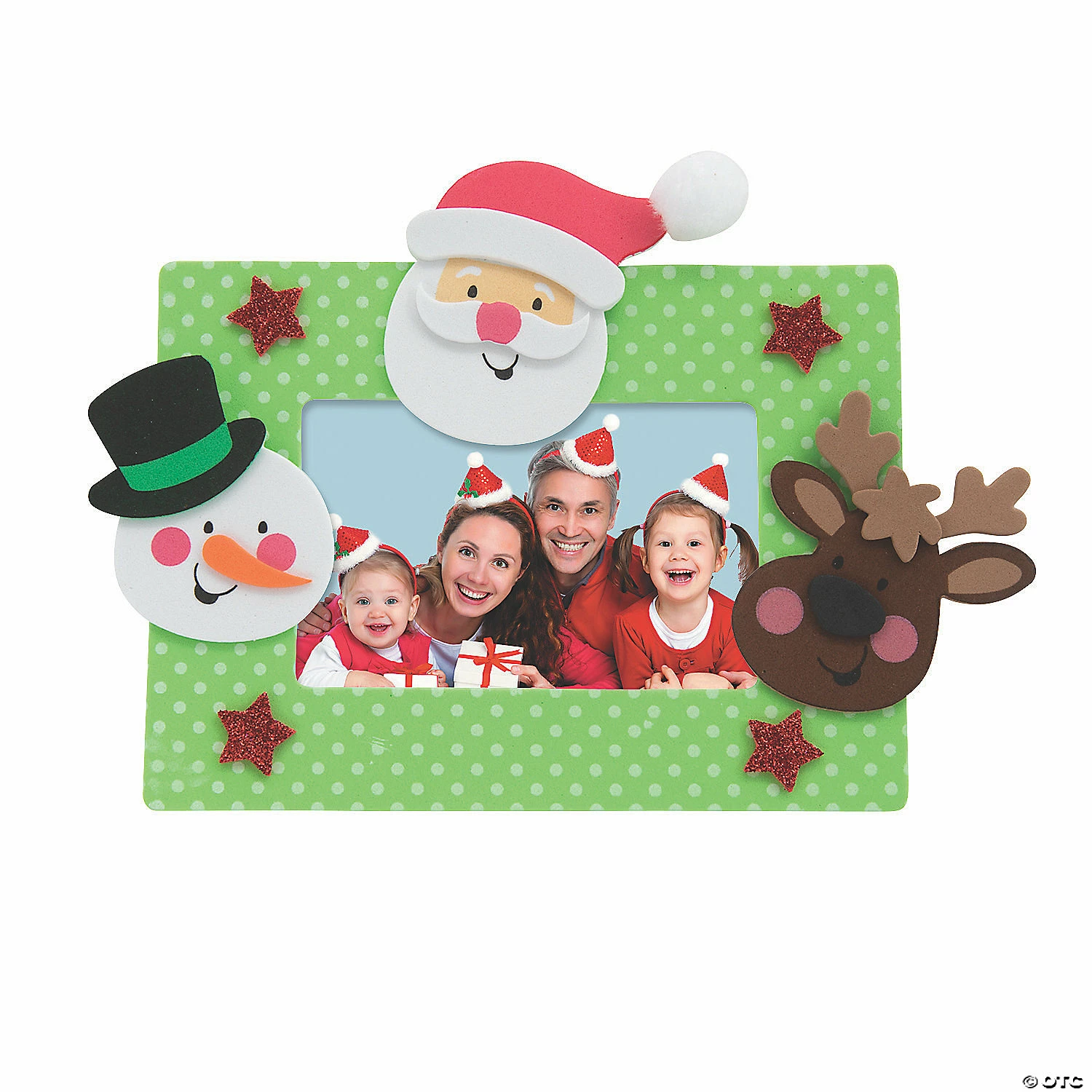 The Christmas Character Picture Frame is an easy Christmas craft idea. This Christmas themed frame allows you to add Santa, Santaβs Reindeer, Frosty the Snowman, and your favorite Christmas photo in the center. It is a great winter craft to make and put the childrenβs picture with Santa in the center. This Christmas picture frame is made from foam and is easy to assemble. Children can put their favorite holiday picture in the frame with Santa and other Christmas characters. Includes self-adhesive foam pieces. 8″ x 6″ with a 4″ x 2 1/2″ photo space. Makes 12. Some glue may be required. Β© OTC