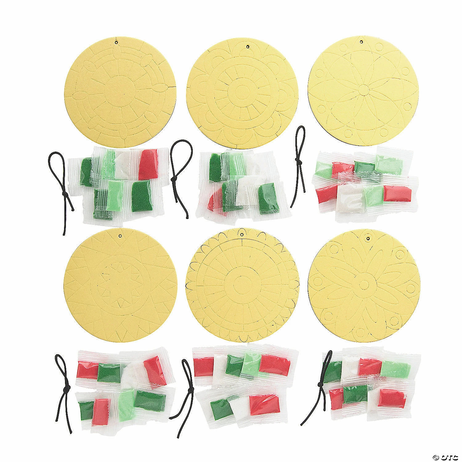 Get in the spirit of the holiday season by creating your own colorful Christmas ornaments! Using the included sand in red, white and two shades of green, these Christmas decorations are great for hanging on your own Christmas tree or giving as Christmas gifts to loved ones. Makes a great kidsβ activity at school, daycare and home as well. Includes cardstock sticky boards, bags of assorted color sand and satin cord for hanging. (2 dozen per unit) 5″ diam. Β© OTC