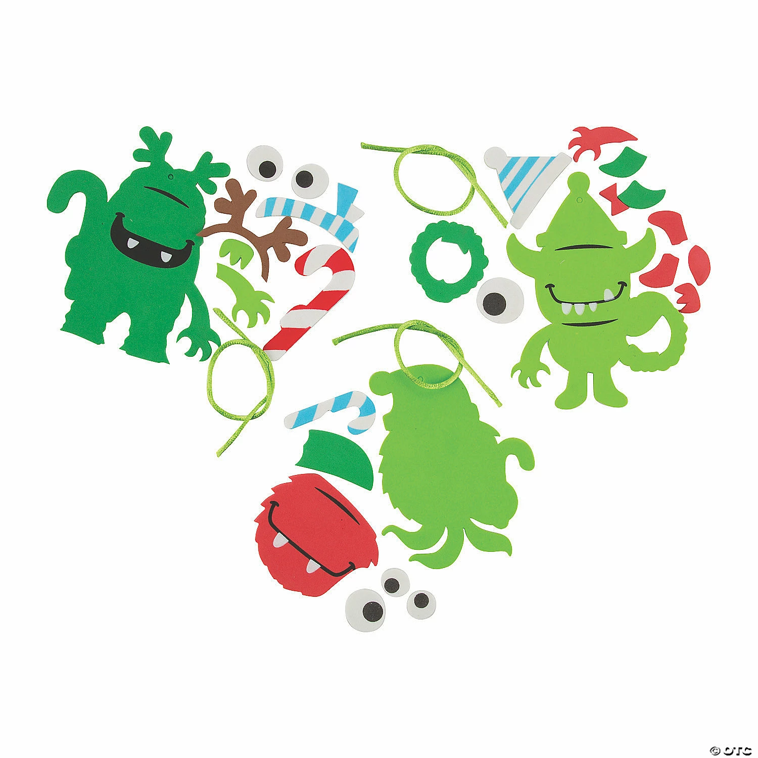 Brighten your Christmas tree with these oh-so-cute friendly monster ornaments! A fun holiday craft activity, kids will love creating their own monsters to display proudly as part of your Christmas decorations. Completed crafts also make great stocking stuffers and Christmas gifts! Includes self-adhesive foam pieces and satin cording. 3″ – 4″ x 4″ β 4 1/2″ Makes 12. All craft kit pieces are pre-packaged for individual use. Kits include instructions. Β© OTC