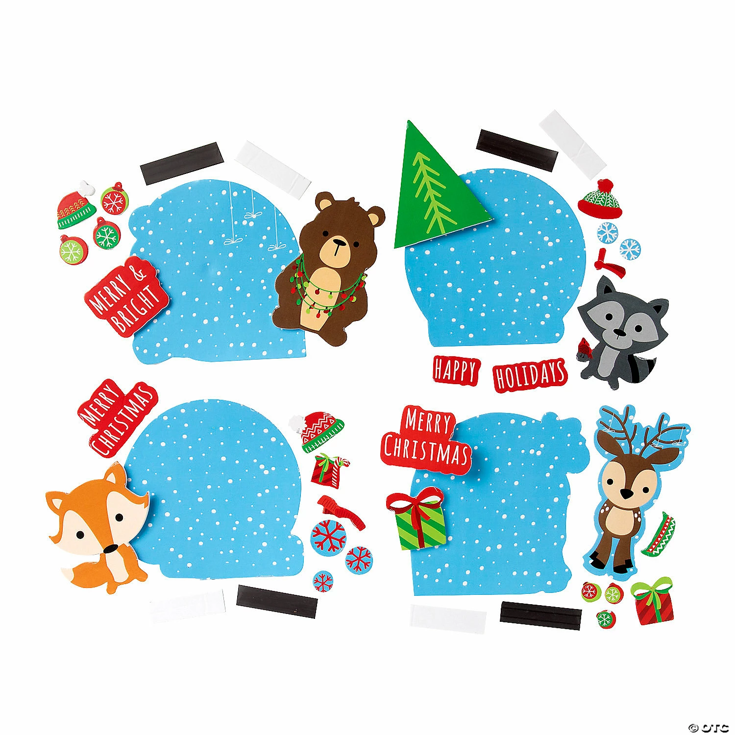 Get your Christmas craft on with this fun kit! Perfect for a snow day, the kit has everything you and your kids need to make a pack of magnetic Christmas critters. Each magnet design in the assortment features a seasonal greeting and a cute woodland animal dressed for cold weather. Once youβre done, you can decorate your fridge for a bit of holiday cheer or give them away to friends and family as presents. Includes self-adhesive foam pieces. 4β x 4β All craft kit pieces are pre-packaged for individual use. Magnets are packaged separately. Do not discard. Kits include instructions. Makes 12. Β© OTC