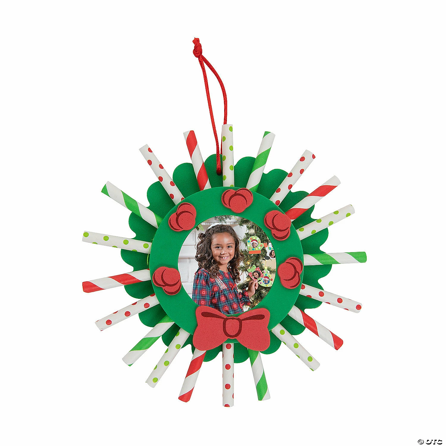 Kids will have fun making this festive Christmas wreath and taking it home to proudly display on the Christmas tree for all to see! This is a great classroom or holiday party activity. Capture and insert a photo of the child or parents can add their own family photo to it. Includes self-adhesive foam pieces, paper straws and satin cording. 6″ with 2 3/4″ photo space. Makes 12. All craft kits are pre-packaged for individual use. Kits include instructions. © OTC