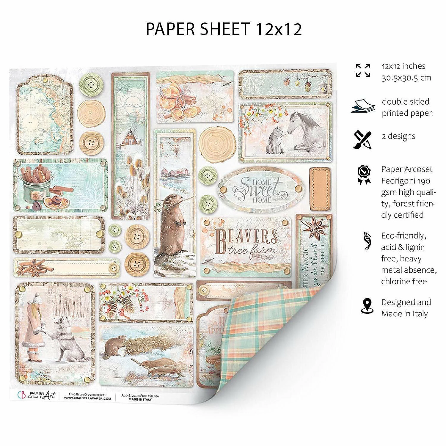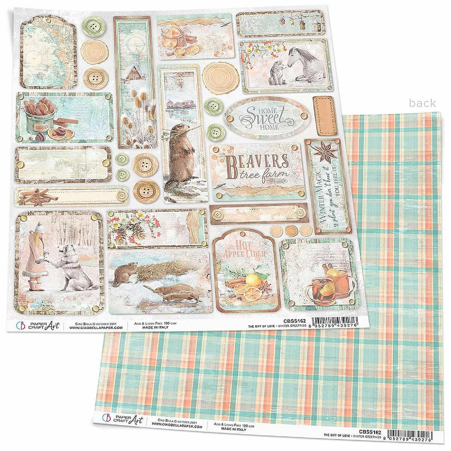 Ciao Bella Winter Greetings Paper Sheet 12″x12″ Winter is the gift season. The incredible true story of love between a girl, an Alaskan Malamute and Arabian horse, beautifully illustrated by our artists, made us think that the best gift takes time, cannot be bought with money but itβs built slowly in the heart. Above all, it knows no boundaries of race. The gift of love. This collection in a warm color palette powder pink, orange and ice blue, will accompany you in the gift season, inspiring to think with whom and how to expand the sharing of your gift. The more it extends the more it will warm your heart and make you feel good, like a glass of hot apple cider in a cold winter day. In scrapbooking industry, Ciao Bella paper collections are about Italian high quality. They feature versatile patterns and styles, perfect for a variety of applications. Great original illustrations and color palettes, often bold and unconventional, have been thought out in details to get the most from any sheet. All of the lines are printed in Italy with organic inks on forest-friendly certified paper by a carefully selected team of professionals specialized in traditional printing Italian skills. 12×12 inches (30,5×30,5 cm) double-sided printed sheet 2 designs; one side includes wintery images with a girl, a horse, a dog, a beaver, hot apple cider, cinnamon sticks, and pinecones, the other side is a green plaid Paper Arcoset Fedrigoni 190 gsm high quality, FSC Forest friendly certified Acid & lignin free, heavy metal absence, chlorine free Designed and Made in Italy