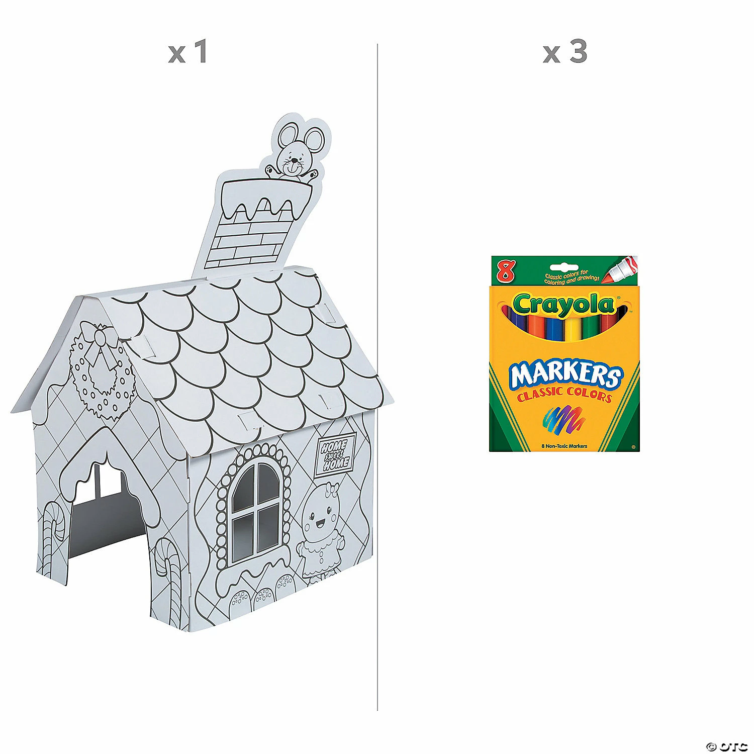 Hereโs a fun holiday project for kids that will keep them entertained while using their creativity and artistry! Kids can color this gingerbread playhouse with the included Crayolaยฎ markers and then play in the playhouse afterward! A fun family art project for the holidays, this kit has everything needed for a fun day of creating something special. (25 pcs. per unit) Simple assembly required. Assortment may vary.Includes:โข 3 Boxes of Crayolaยฎ 8-Color Conical Tip Classic Markers (Safe and non-toxic. Includes 8 assorted colors per box. 5 1/2″ Conforms to ASTM D-4236.)โข 1 Cardboard Color Your Own Gingerbread Playhouse (25″ x 30″ x 35″ Simple assembly required.)
