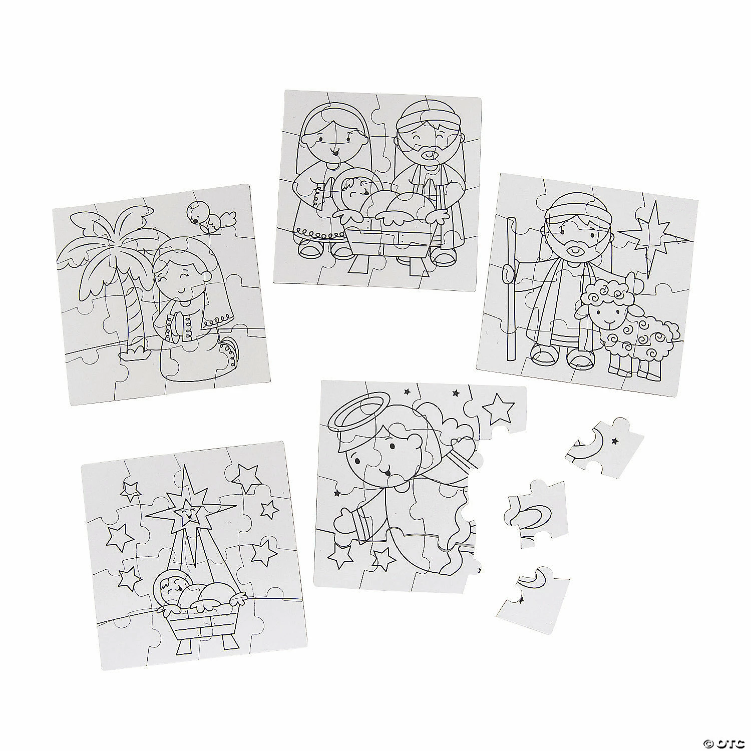 Oh what fun it is to color your own Christmas puzzle! Break out this kidsβ activity during Christmas parties, Sunday School classes or church events to keep kids creative and engaged. Theyβll love being able to color the puzzle and then break it apart and put their creation back together time and time again! Cardboard. Each puzzle is 16 pcs. (50 puzzles per unit) 4″ Β© OTC