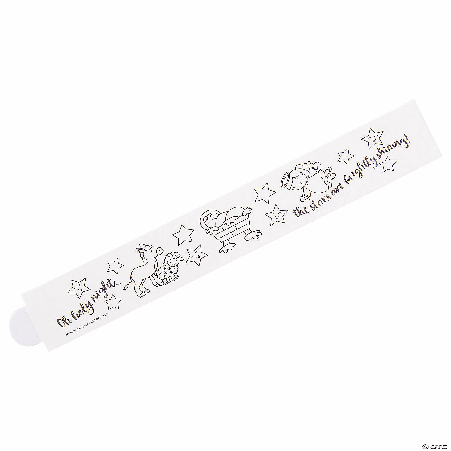 Shopping for religious Christmas crafts for kids? For a fun Sunday School activity, have your students color these DIY bracelets with crayons and markers while you read the Nativity story from the Bible. The paper craft bracelets are printed with baby Jesus, an angel, animals, stars and โOh holy nightโฆ the stars are brightly shining!โ Includes adhesive closure. Paper. 9″ ยฉ OTC