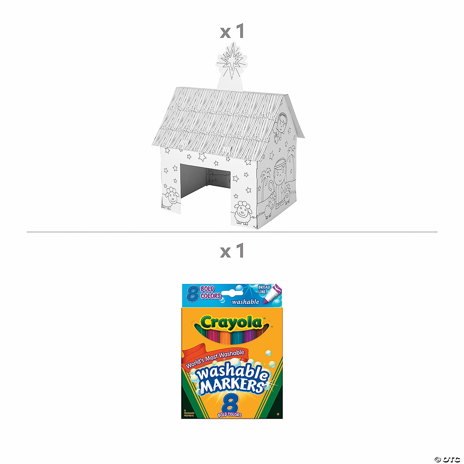 β’ ENJOY A SELF-SOOTHING ACTIVITY β Sometimes, little kids can have big emotions, and they might not always know how to calm themselves down. Coloring is a great stress-relieving activity for both kids and adults. So, take the time to unwind with this color your own project and let the parent/child bonding begin!β’ SPARK IMAGINATION & PROMOTE SELF-EXPRESSION β Give your little artists wings with this fun coloring project. Let kids choose their colors and watch their creativity take flight!β’ HAVE A BLAST! β When it comes to creating art, the possibilities for fun are endless! Kids will have a blast coloring in their creations, and itβs a simple activity that can be finished in stages. Color in all the designs or leave a few strategically blank for a fun look!Product Description:Kids can prepare to take part in the Nativity story by coloring this awesome stable playhouse with the included markers! This is a great Christmas project for little ones in Sunday School or home to show off some festive creativity and imagination. Once colored, all the stable pieces fit together to create a fun structure for everyday play or a church Nativity skit. Includes 8 assorted markers. Safe and non-toxic. Conforms to ASTM D-4236. Assembly required. Folds easily for storage.Size: 30 1/2″ x 25″ x 34 1/4″Quantity: 1 playhouse, 8 markersMaterial: Cardboard