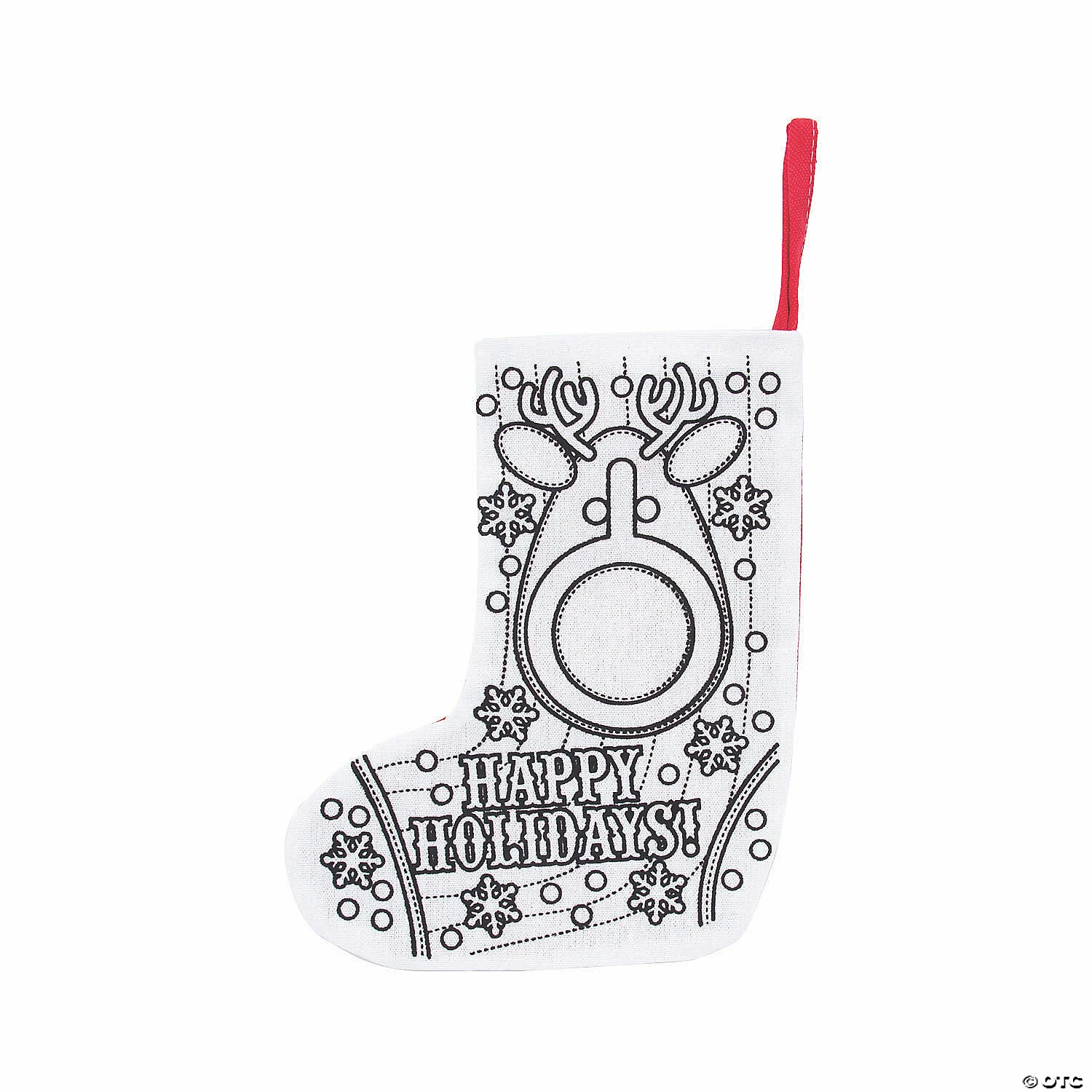 One way to make an ugly sweater pattern even uglier is to add some color! These fun stockings have an ugly sweater pattern thatβs ready to be colored by kids as a holiday classroom project or at an activity table at a holiday party. Tuck these stockings into Christmas gift bags or hand them out as holiday party favors. Kids will love making their own Christmas decorations! Canvas. 7 3/4″ x 10″ Β© OTC