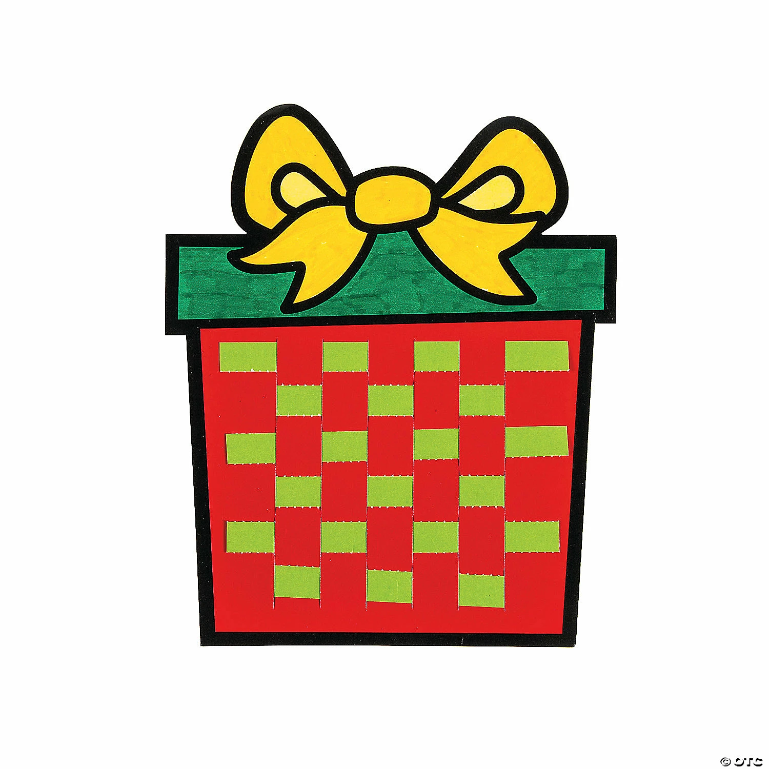 This present isnβt quite ready to be opened on Christmas Day. It needs wrapped and a beautiful bow, so donβt delay! Kids will have fun weaving the strips of paper through the gift and coloring its lid and bow. This craft is a great holiday activity for the classroom or daycare that kids can take home as a Christmas decoration. Cardstock. 7 1/2″ x 9″ Makes 12. All craft kit pieces are pre-packaged for individual use. Kits include instructions. Β© OTC