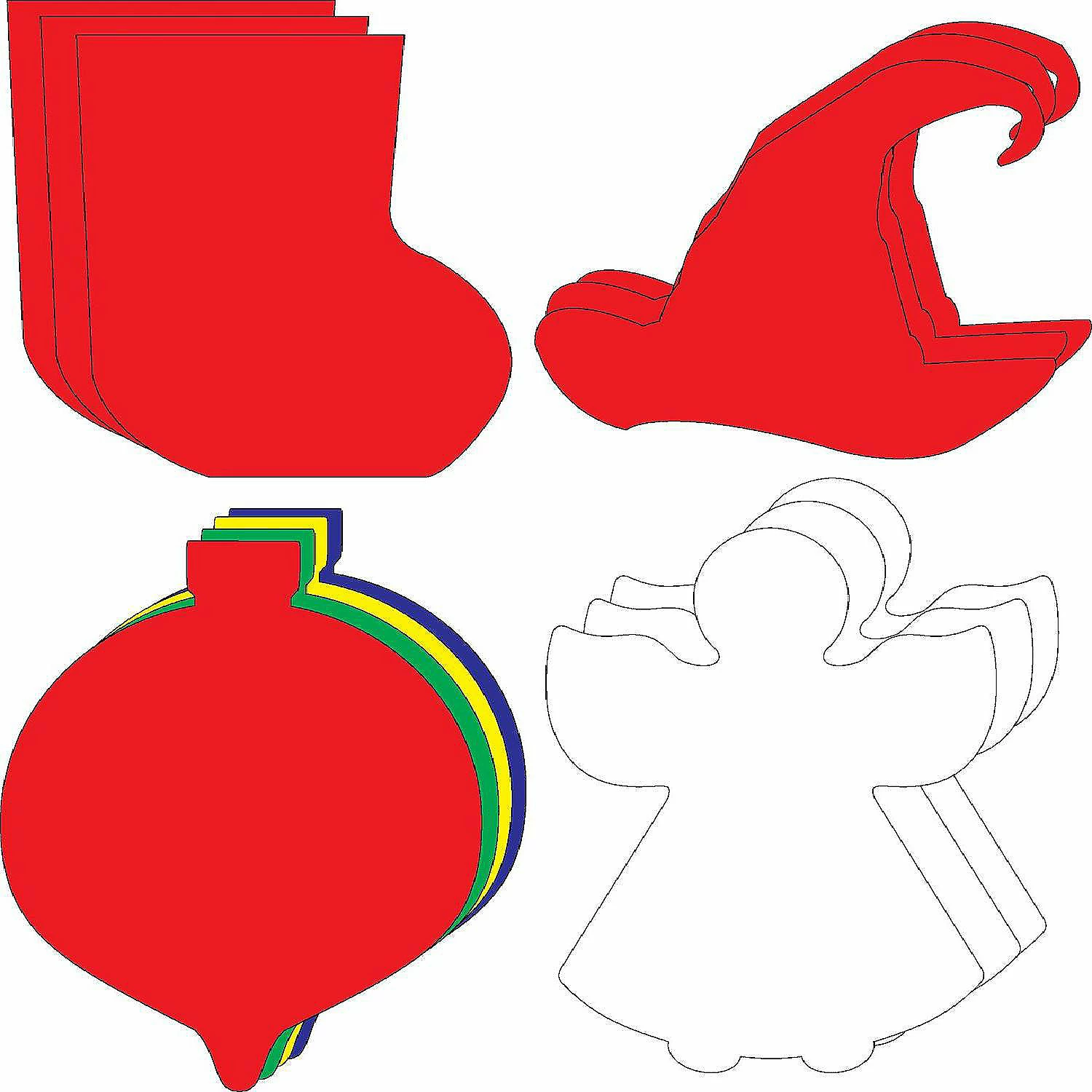 MADE IN USA: The cut-outs come 31 per design for a total of 124 cut-outs. Set of 4 shapes: Stocking, Santa Hat, Angel and Ornament. Measures 3 inches x 3 inches and are made in the USA.