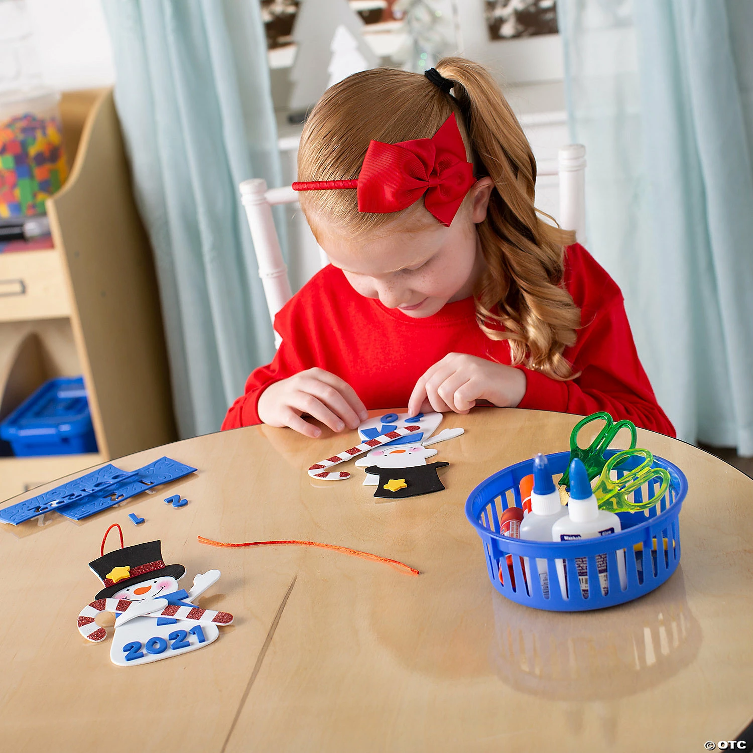 Celebrate this holiday season with this great Dated Snowman Ornament Craft Kit! Little ones will love making their own little snowmen, complete with a fancy top hat and holding a candy cane, in the classroom or in day care. Then they can take their ornaments home to hang on the Christmas tree! Includes self-adhesive foam pieces. 3 3/4″ x 6 1/2″ with satin cording for hanging. Makes 12. All craft kit pieces are pre-packaged for individual use. Kits include instructions. Β© OTC