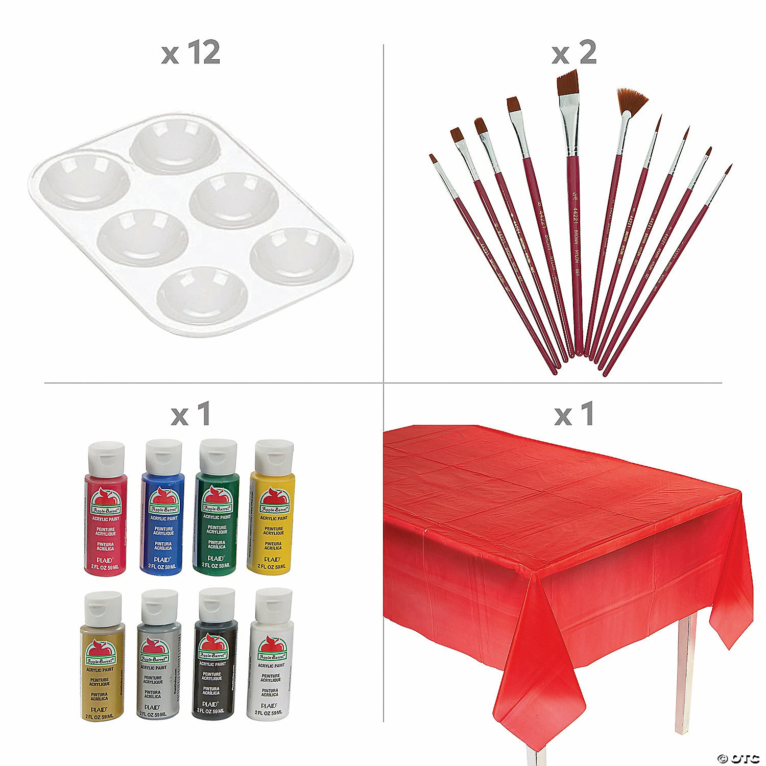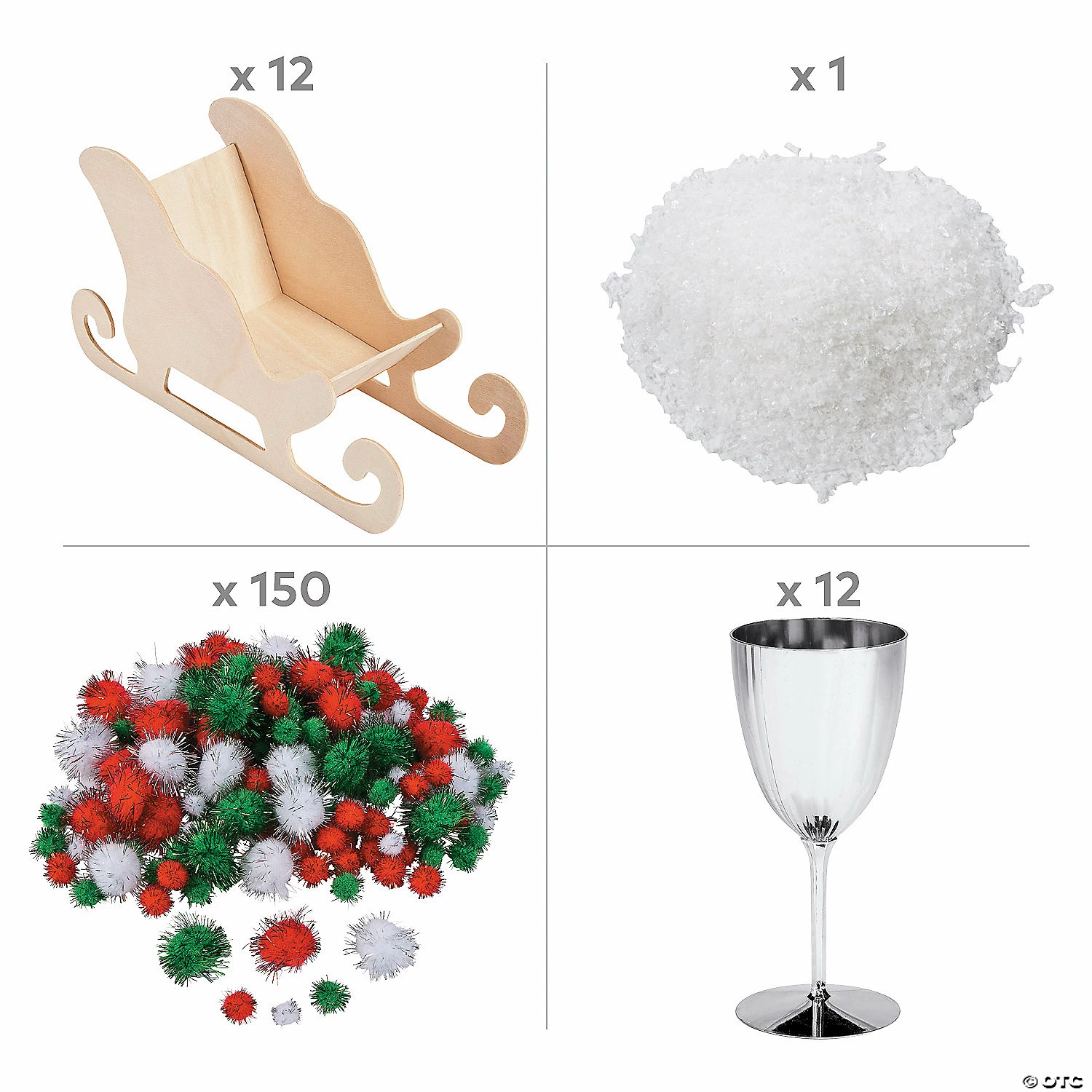 These sleighs will certainly spread some holiday cheer. And with all that wine, youโre going to need Santaโs reindeer to help steer! This fun DIY kit has everything you need and is great for holiday parties and adult craft night with family or friends. Decorate this cute sleigh with paint and other embellishments then place on a side table, mantel or anywhere throughout your home. This handmade Christmas decoration would also be a unique Christmas gift for someone special. (216 pcs. per unit) Assortment may vary.Includes: โข 8-Pc. Acrylic Primary Colors Paint Set (Includes 8 primary colors each in a 2 oz. plastic bottle. Safe and non-toxic. Conforms to ASTM D-4236.)โข 1 Plastic Craft Snow (Total wt., 3 oz.)โข 12 DIY Unfinished Wood Sleighs (8″ x 3 x 4 1/2″)โข 150 Acrylic Glitter Christmas Pom-Poms (1/2″ – 1″)โข 12 Plastic Rectangular Paint Palettes (Holds up to 6 colors in 1/2″ deep wells. 5 1/4″ x 3 3/4″)โข 20 Plaidยฎ Brown Nylon Paintbrushes (Includes 6 round brushes, 6 shader brushes, 2 angular shader brushes, 4 filbert brushes and 2 fan brushes. 6 7/8″ – 7 7/8″)โข 1 Plastic Red Tablecloth (Thin, slightly transparent. Disposable. 54″ x 108″)โข 12 Plastic Silver Metallic Wine Glasses (6 1/2″ 6 oz.)
