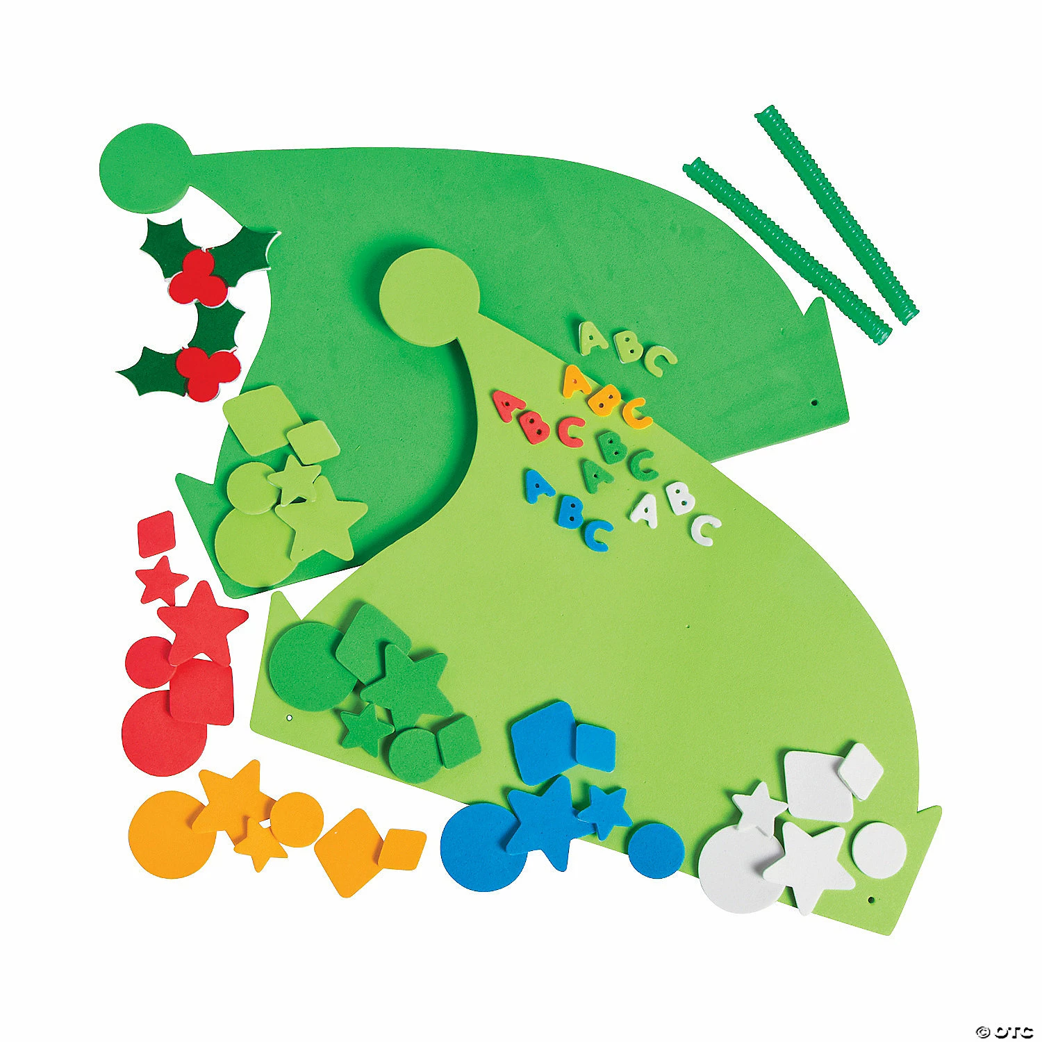 Look North Pole cool in this elf hat. A perfect addition to kids’ craft projects, this elf hat will inspire fun at a family, school or church holiday party. Adorn your hat in stars, holly, shapes and personalize it with your name. You’ll blend right in with Santa’s real little helpers once you’ve finished your topper. Wear on Christmas morning while unwrapping gifts to keep the fun going! Includes self-adhesive foam shapes and coil band. 10″ x 7″ Makes 12. Kits include instructions and extra pieces. Β© OTC DIY Elf Hat Craft Kit Template