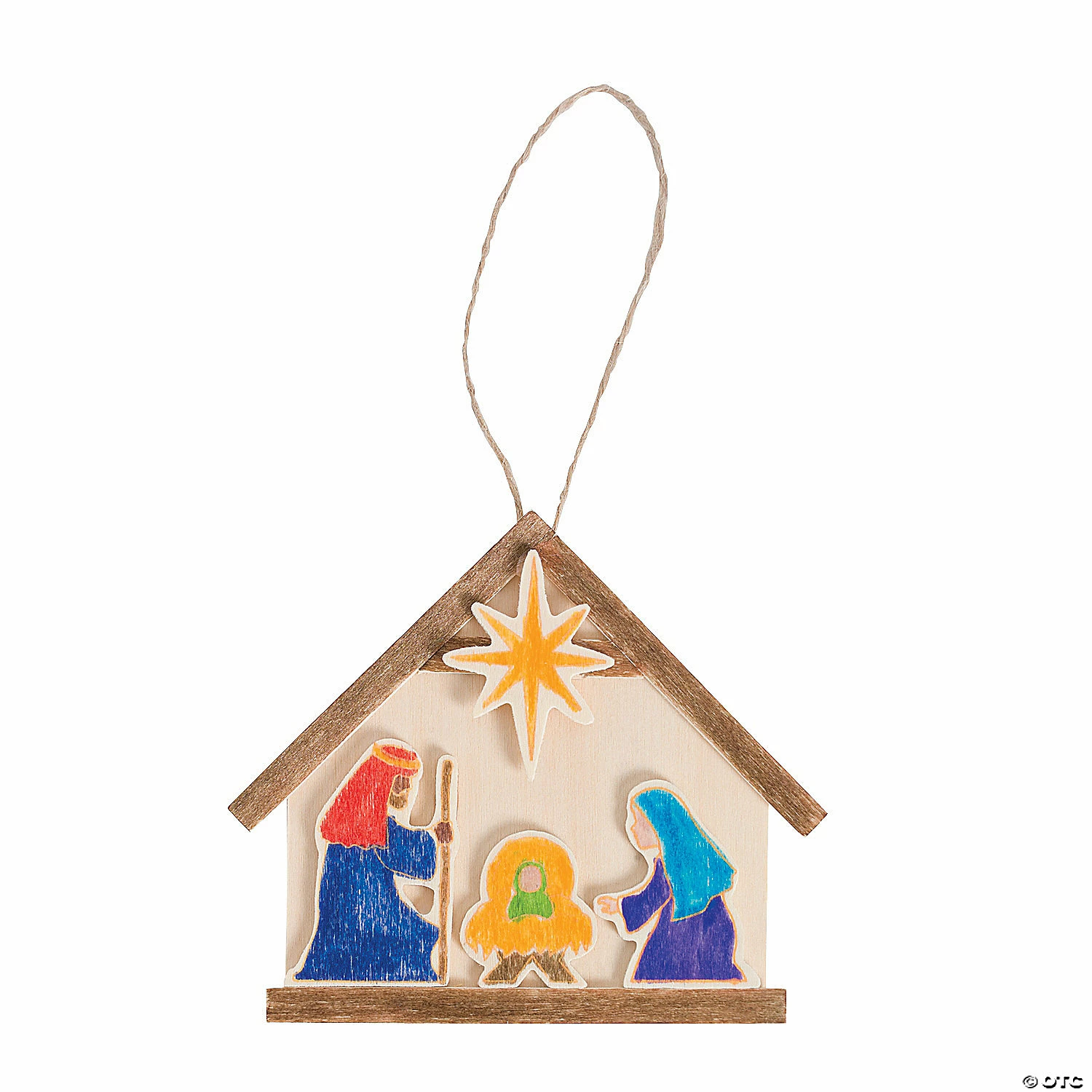 Use your own glue, paints and other do-it-yourself embellishments to make the perfect scene for baby Jesus! This DIY wood Christmas Ornament craft for kids makes a fun-filled holiday craft that youβll cherish hanging up on your Christmas tree year after year. Wood. (1 dozen per unit) 5 1/2″ x 4 1/2″ Some glue required, sold separately. © OTC