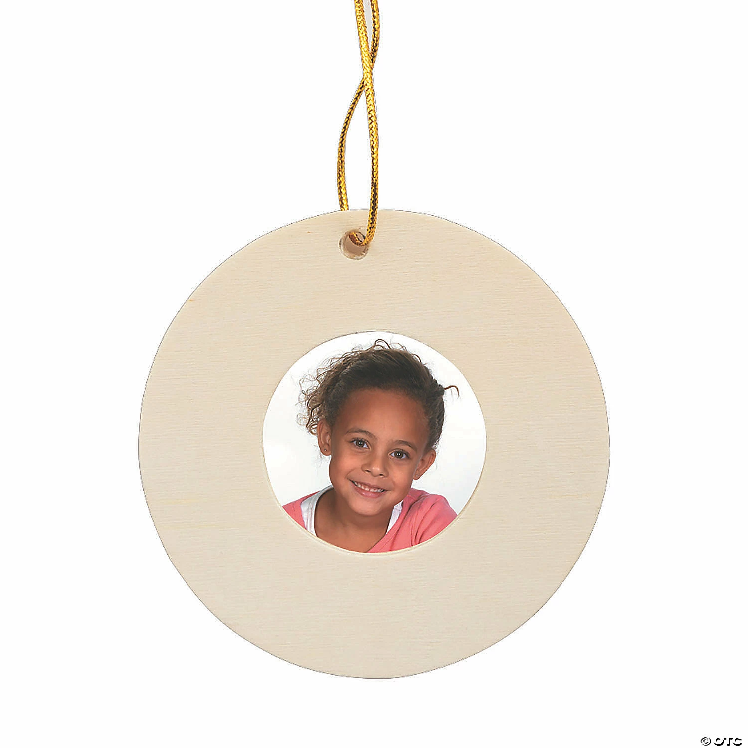 Create your own unique Christmas decorations with these wood picture frame ornaments. Decorate these treasures with paint, glitter, bows and more, and then add in a photo of yourself, your children or the whole family. Makes a great addition to your own Christmas tree, or wrap them up as memorable Christmas gifts to grandparents and other loved ones. Wood. 3 1/4″ diam.; holds a 2″ round photo. Paint not included.