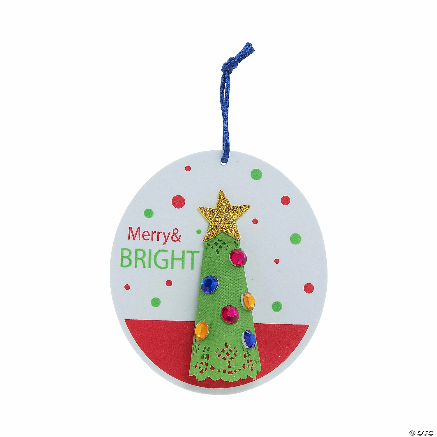 Some may say that doilies are a thing of the past, but their beautiful and intricate designs will leave an impression that lasts! Kids will have fun assembling this cute Christmas craft and decorating the ornament with colorful rhinestones. This is a great activity for the classroom or daycare and can be hung on the tree or used as a holiday decoration. Includes self-adhesive foam pieces, paper doilies, plastic rhinestones and satin cording. 4 1/2″ x 5″ Makes 12. All craft kit pieces are pre-packaged for individual use. Kits include instructions. Β© OTCDoily Christmas Tree Ornament Instructions
