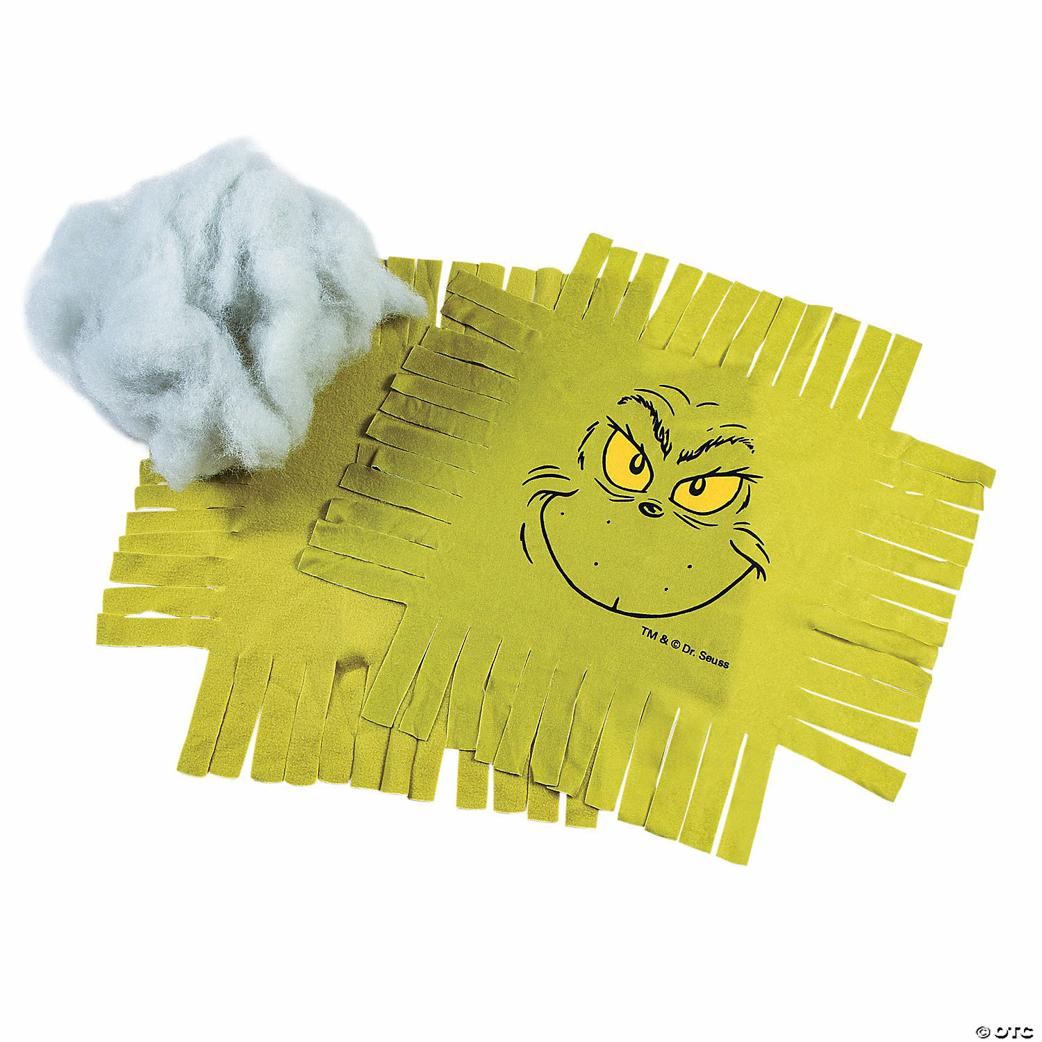 The Grinchโs heart has grown three sizes, and heโs gone cuddly! Donโt believe us? Hereโs proof! A Seussical addition to holiday crafts for kids, this tied pillow project features The Grinchโs signature smirk. This is a blast for kiddos (just like Cindy Lou Who!) to create during a party over holiday break or a classroom celebration leading up to the most wonderful time of year! Includes pre-cut fleece fringe and polyester fiberfill stuffing. Unfinished, 16 1/2″. Makes 6. All craft kit pieces are pre-packaged for individual use. Kits include instructions. Imported. ยฉ OTC / TM & ยฉ Dr. Seuss Enterprises, L.P. All Rights Reserved.