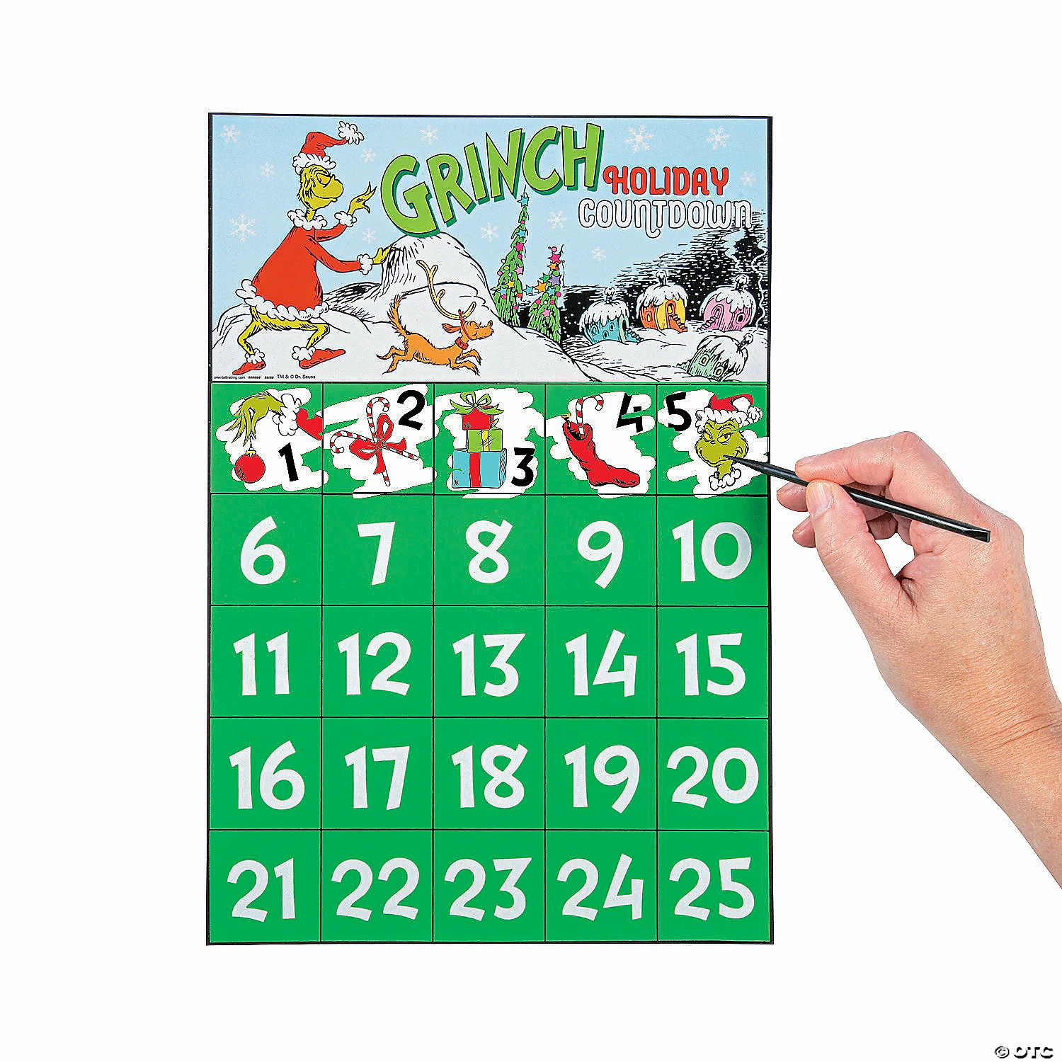 Scratch off a square each day of Advent to reveal a Seussical message or icon! Great for holiday giveaways or Christmas activities, this calendar features icons inspired by that infamous mean old Mr. Grinch. With this, youβll build anticipation for the merriest day of the year. Hereβs hoping no green monsters try to steal it all away! Includes scratching tools. Paper. (1 dozen per unit) 8 1/2″ x 12 1/2″ Β© OTC / β’ & Β© Dr. Seuss Enterprises, L.P. All Rights Reserved.