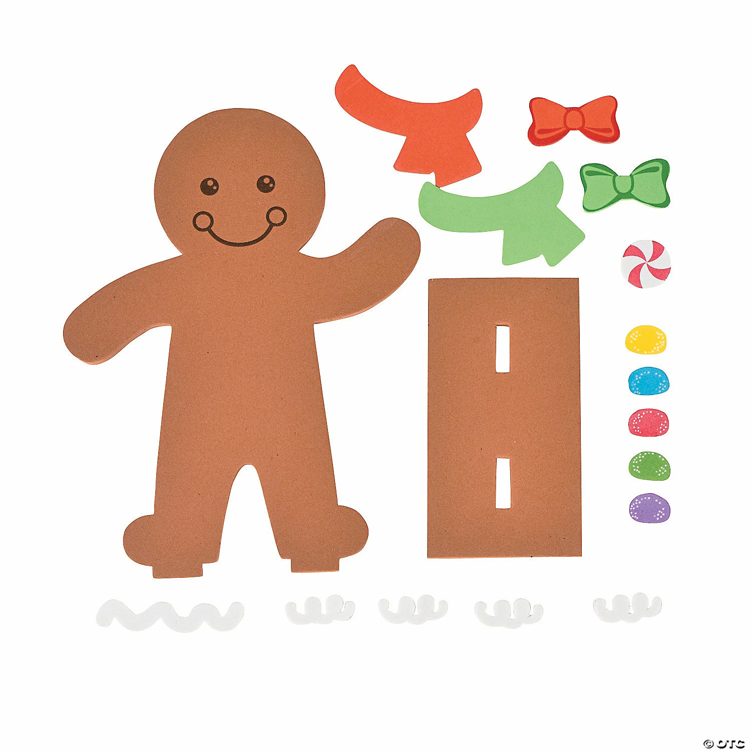 The Foam Gingerbread Stand up Craft Kit includes a foam gingerbread man, self-adhesive decorative pieces and a stand. Assemble them with your family and then stand them up around the house. They’re fun for the kids and decorative for the house. Each unit can make 24 gingerbread men that stand at 5 1/4″ x 2″ x 7″. © OTCFoam Gingerbread Stand Up Craft Kit Instructions