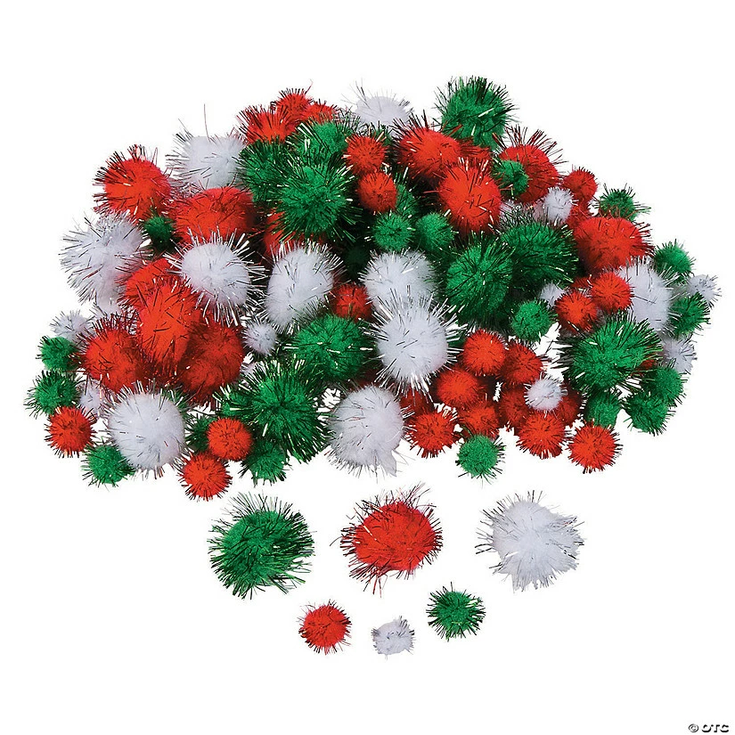 Make Christmas crafts more shiny, colorful and fun with these cool glitter Christmas pom-poms! These fun holiday craft supplies, which come in two sizes and in red, green and white, are awesome in DIY decorations and kids’ craft projects. Stock up before the Christmas season! Acrylic. (Approx. 150 pcs. per unit) 1/2″ – 1″