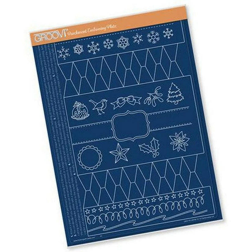 GROOVI Christmas Cracker TemplateThis large template, once embossed, allows you to cut it out to create a Christmas cracker, fill it with goodies and seal it for an extra surprise on Christmas Day! Also includes additional elements, such as birds, baubles, bows, snowflakes, mistletoe, tree, doily, star, holly/berries, poinsettia and star, swirl and light borders!Intricate and clever designs have been laser etched with precision into top quality acrylic plates, thereby allowing you to get in the groove with a specifically made-to-measure embossing tool, and effortlessly follow the design path through parchment. The end result is quick, crisp and clean. For best results from the Groovi Plates and Groovi Plate Mate, use the 0.8mm – 1.3mm embossing tool. 8.25″ x 11.70″