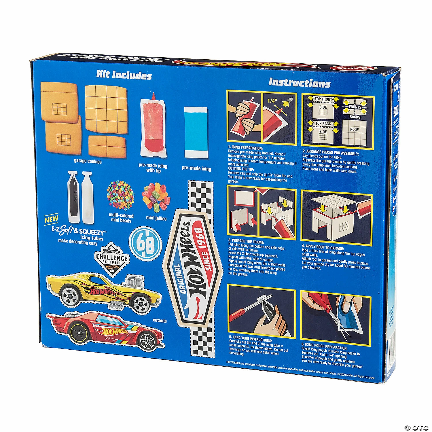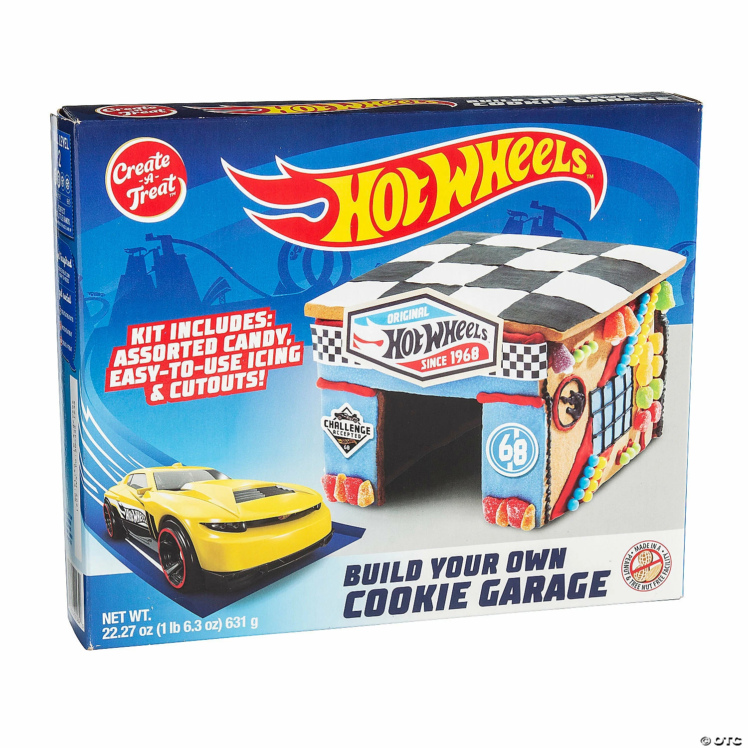 This impressive kit has everything a kid needs to construct a cool cookie garage for their toy cars! Just follow along with the instructions and you’ll be left with a tasty gingerbread building that can be customized with candy pieces and eaten afterwards when playtime is done. Try bringing this kit to a Hot Wheels-themed birthday party and watch the little racers go wild. Includes cookies, icing and candy. Box, 12″ x 9 3/4″. Total wt., 22.27 oz. Made in a peanut & tree nut free facility. © 2022 Mattel. All Rights Reserved. HOT WHEELS and associated trademarks are owned by and used under license from Mattel. • Edibles are non-returnable. For more information, visit our “Return Policy” page located on our website.• Made in the USA. Important Country of Origin Information: For certain items sold by OTC on our Web or Mobile sites, country of origin information can change and what is displayed may not be accurate or consistent with manufacturer information. For up to date country of origin information, it is recommended that you rely on product packaging or other manufacturer information.• Ingredient, nutrition, allergen and other product information are provided on our Web and Mobile sites for reference purpose only, without warranty or representation as to accuracy. Manufacturers adjust their labeling regularly and are solely responsible for the accuracy of the information. For general questions concerning these items, please contact our customer service at 800-228-0475.