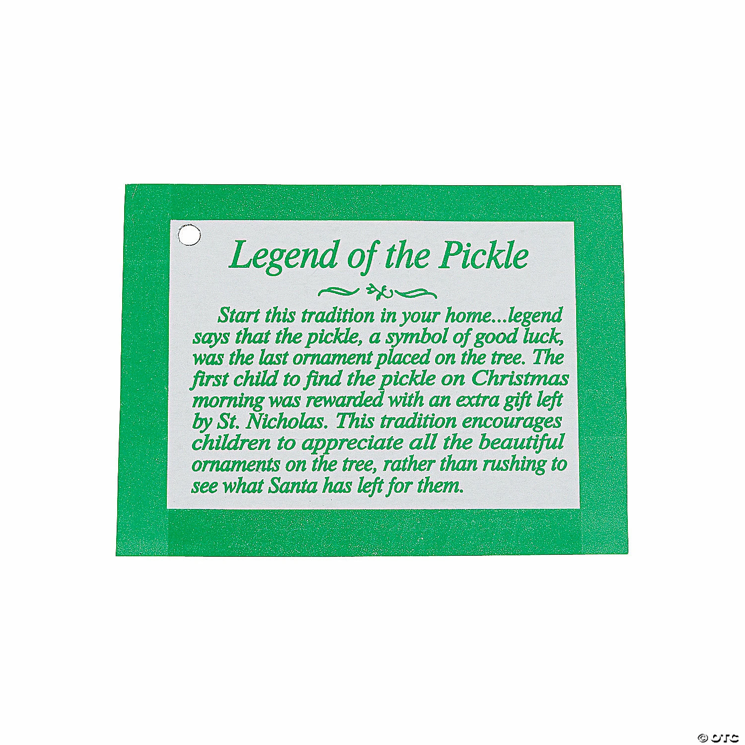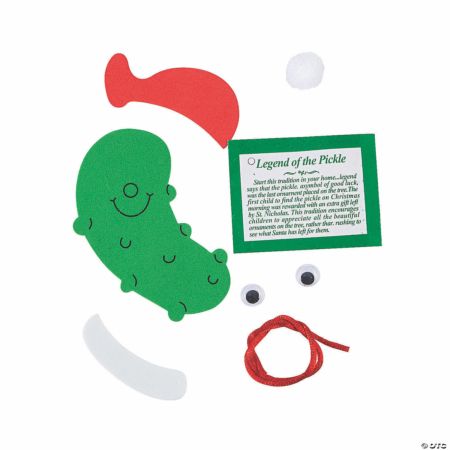 No Christmas is complete without completing a Legend of the Pickle Christmas Ornament Craft Kit! This time-honored tradition has been passed down for many generations of pickle lovers. A fun and unusual Christmas craft for kids, theyβll love this low cost activity for classroom parties. Each with a printed card. Foam, googly eyes and satin ribbon for hanging. 4″ All craft kit pieces are pre-packaged for individual use. Kits include instructions and extra pieces. Β© OTC