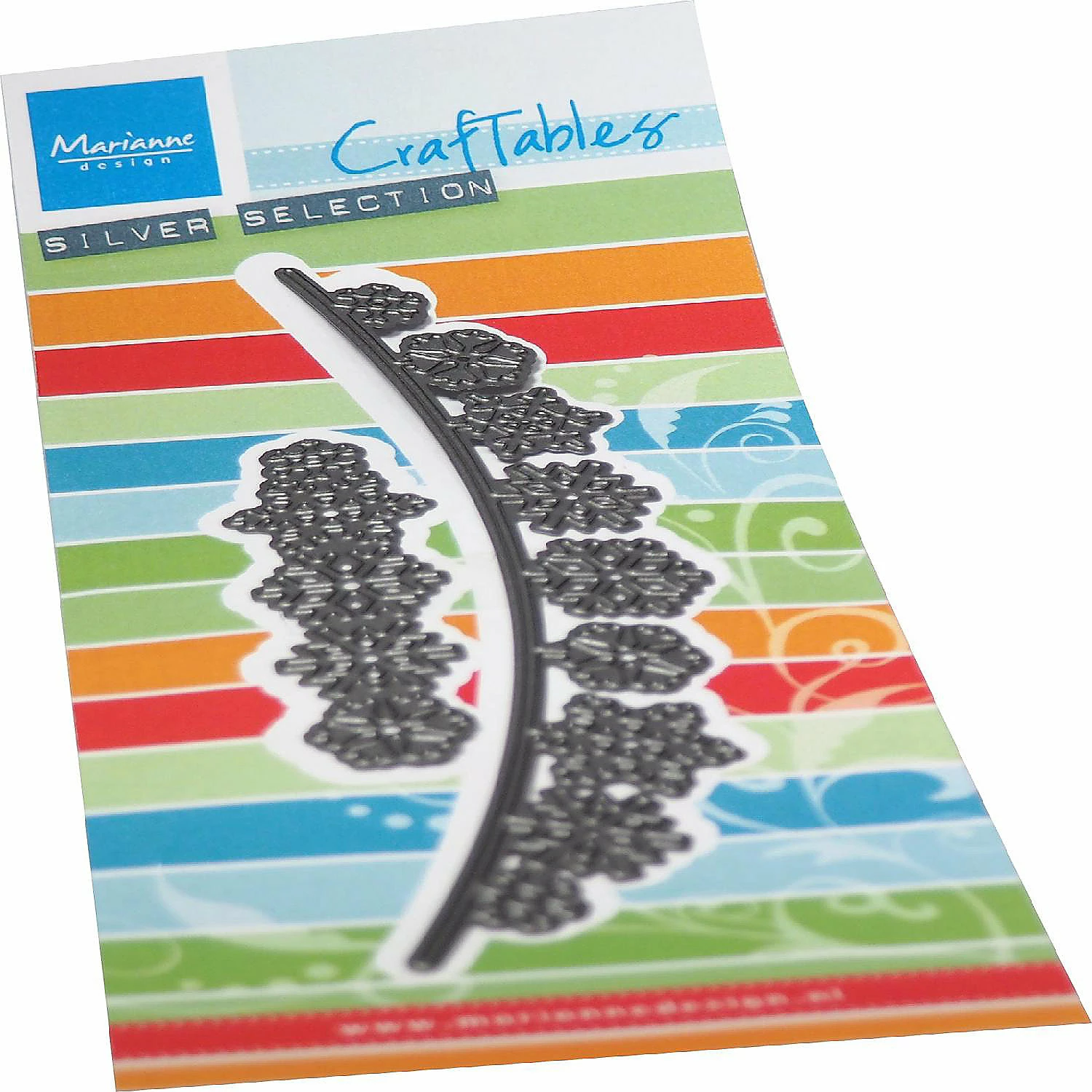 Marianne Design Craftables Die – Chain Of Snowflakes These snowflakes will be a great addition to those festive winter cards. Die cut from Eline’s Sparkling Snow paper pad (PB7062) or soft glitter paper for extra sparkle. 2 pcs, 150 x 20 mm