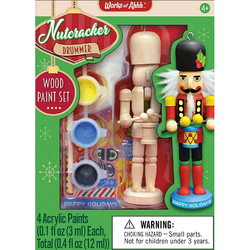 This Drummer Ornament Wood Craft & Paint Kit is made of real wood, and includes everything you need to create a beautiful work of art! The Drummer Ornament Wood Craft & Paint Kit is the perfect gift for every art loving kid! The nutcracker measures approximately 5″ tall, 1.5″ wide, and 1.25″ deep. It includes 1 wood nutcracker drummer ornament, White fur, 1 sticker sheet, 4 non-toxic acrylic paint tubs, and 1 artist-quality paintbrush.