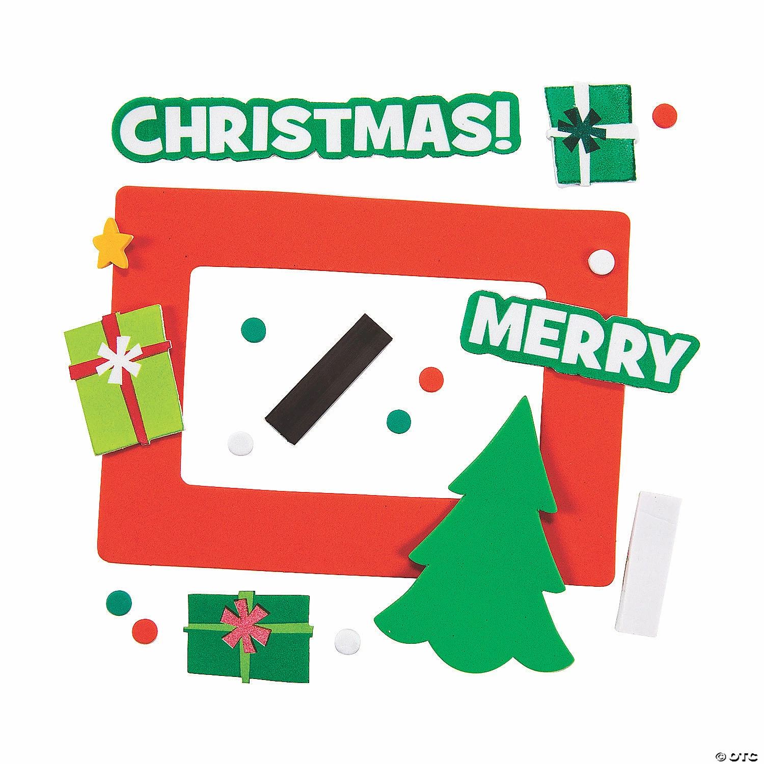 What a fun-filled way to share a favorite Christmas photo! Easy to assemble, this craft kit is a simple way to make Christmas presents for friends and family. Crafting these is a fantastic way to bond with the little ones over the holiday season. Add these kits to your classroom supplies for an easy wintertime activity that students and their parents will cherish. Includes self-adhesive foam pieces. Makes 50. 7 1/2″ with a 4 1/2″ x 2 3/4″ photo space. All craft kit pieces are pre-packaged for individual use. Magnets are packaged separately. Do not discard. Kits include instructions and extra pieces. © OTCMerry Christmas Foam Picture Magnet Instructions