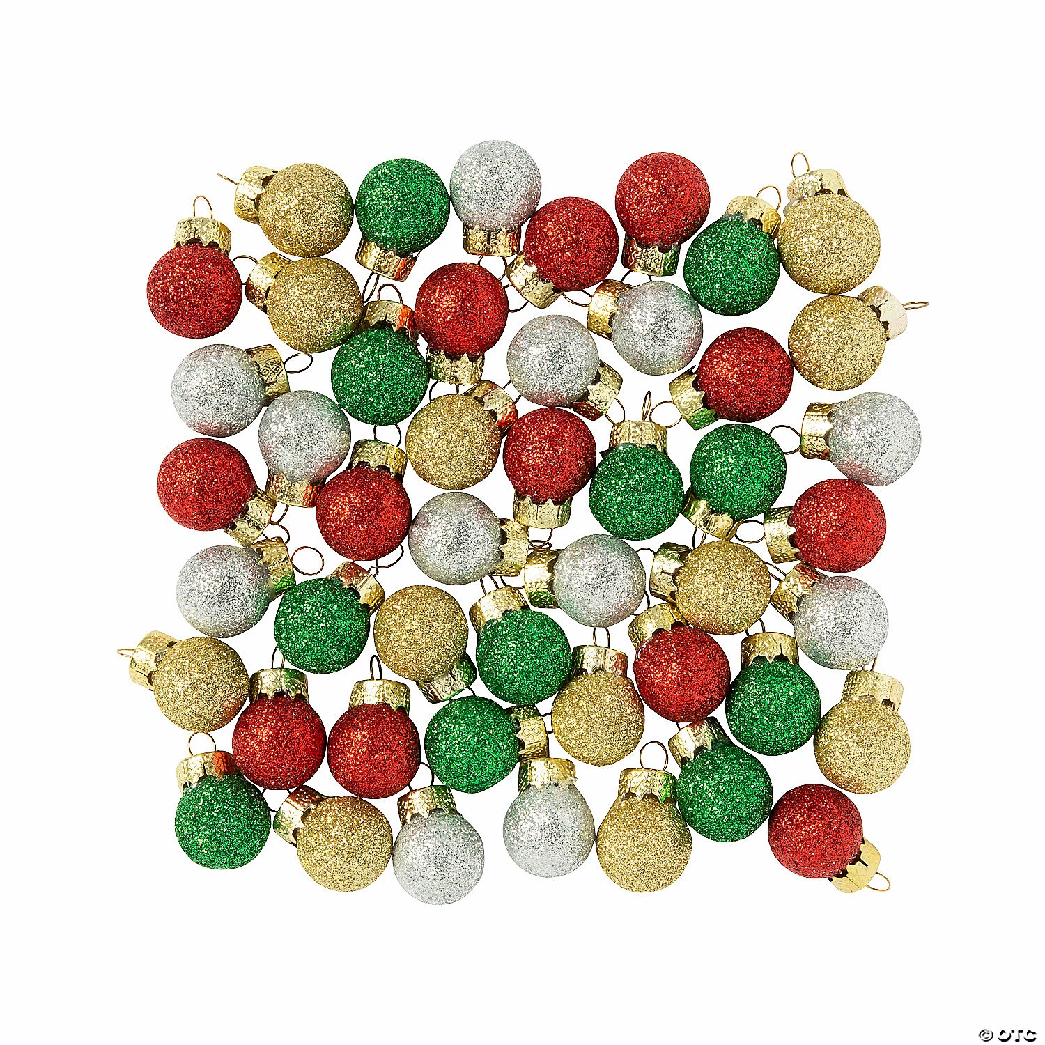Add sparkle to any Christmas dΓ©cor with tiny, glittery red, gold, green and silver ball ornaments that beautifully reflect the twinkling lights of the season. These shatterproof little Christmas ornaments are a dazzling embellishment for wreaths, centerpieces or garland and are just the right size for decorating mini trees, poinsettias or topiaries. Plastic. (4 dozen per unit) 3/4″ x 1″