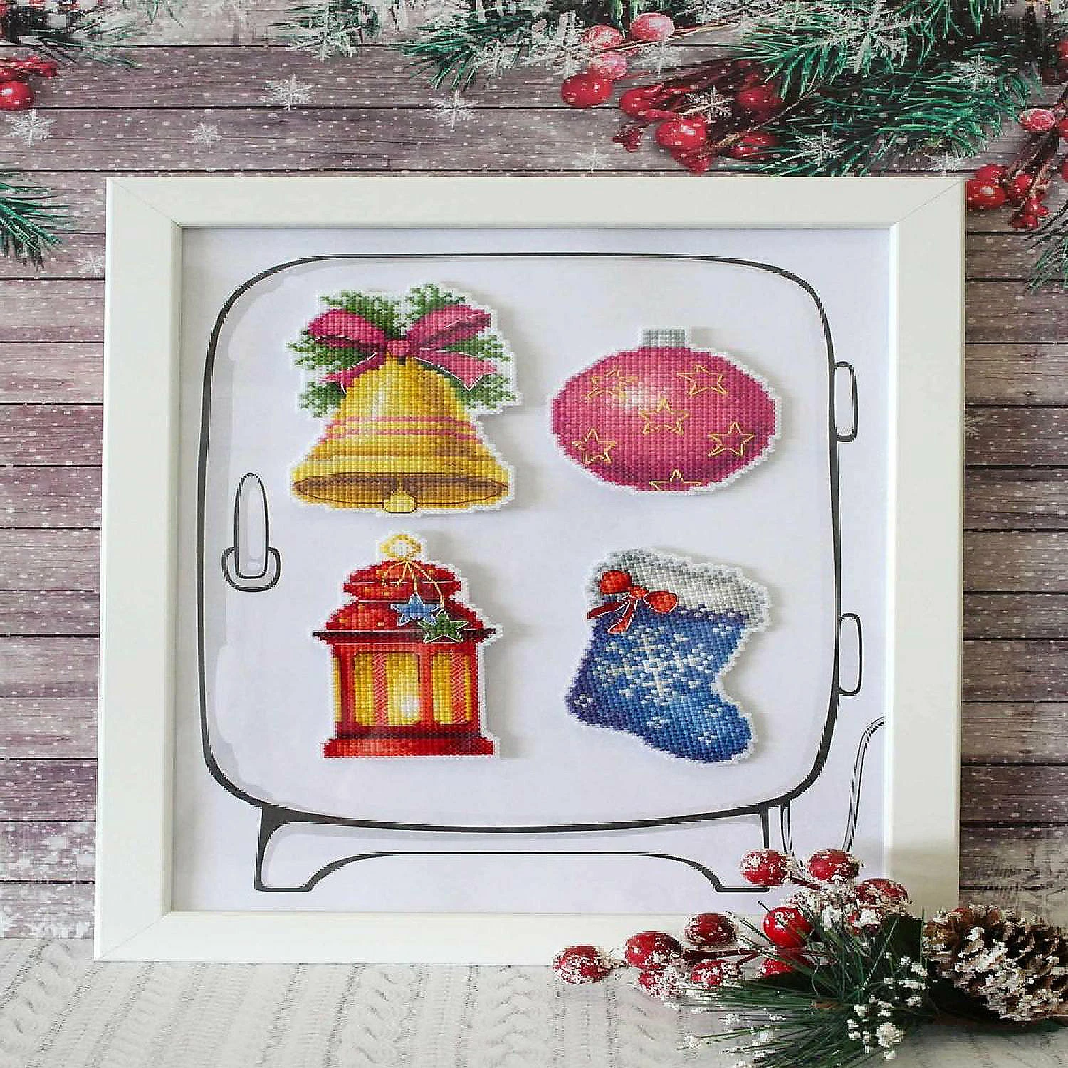 MP Studia counted cross-stitch set of 4 magnets. Cross-Stitch base is plastic canvas and you stitch the back with white felt. Cotton threads. It is new unopened kit.Kit contains: Plastic Aida canvas 14, mouline threads (25 colours), needle, chart and instructions.Size: 9*6 cm, Set of 4 magnetsSize of the project (inch): 3.54*2.36 inchesInstruction in English, French, German and Russian. Monochrome chart.
