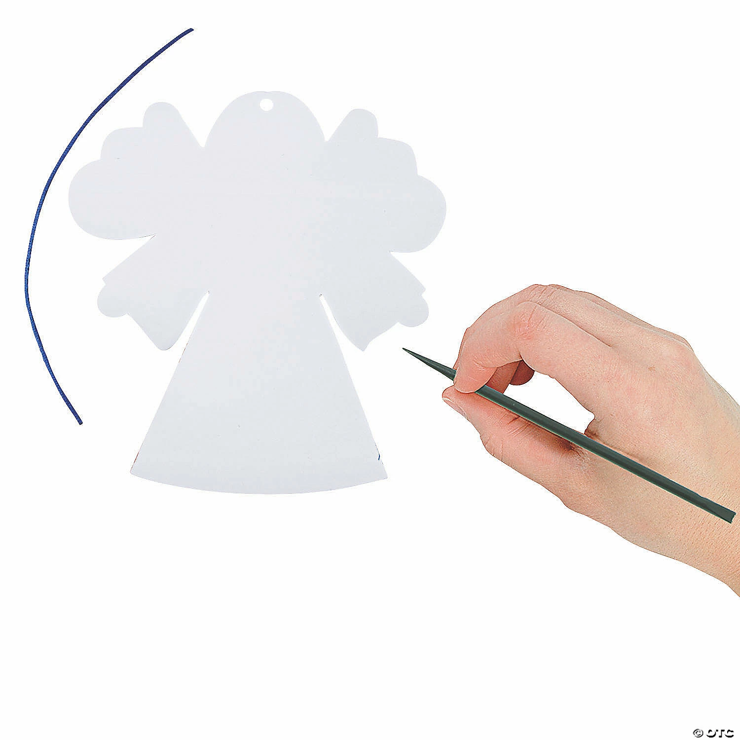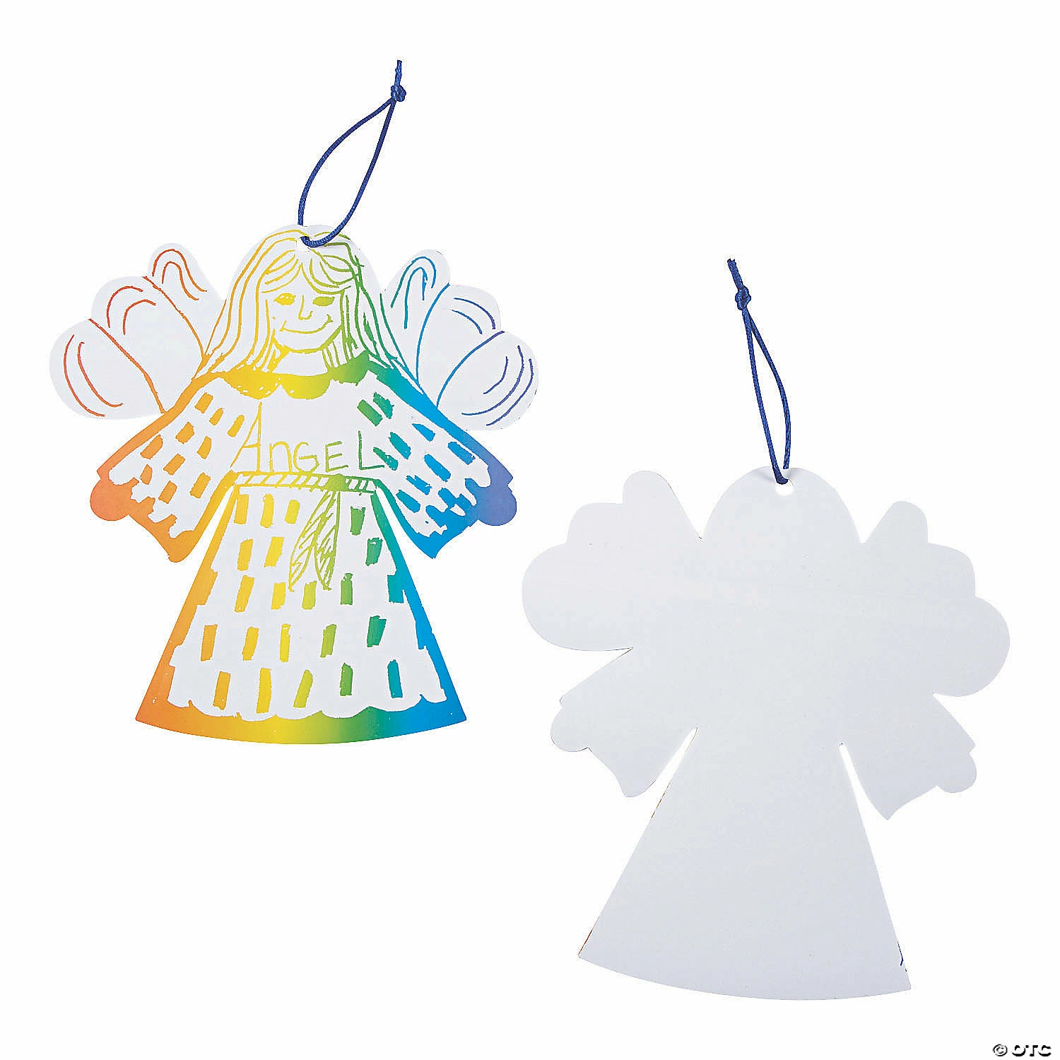 Magic Color Scratch Angel Ornament. You make this angel’s gown colorful! Just scratch designs onto her dress with a scratching tool then hang these Magic Color Scratch Angel Ornaments on a Christmas tree or use them as creative gift tags! (24 paper angels, 12 scratching tools and 24 satin ribbons per unit) 7 1/2″ Β© OTC