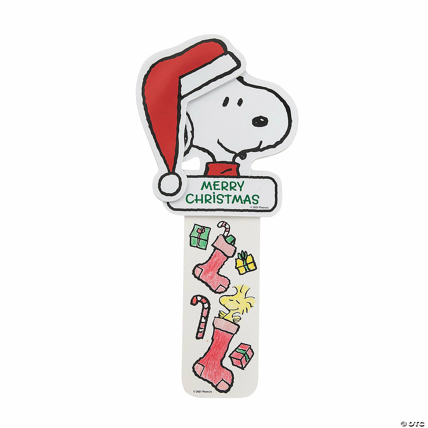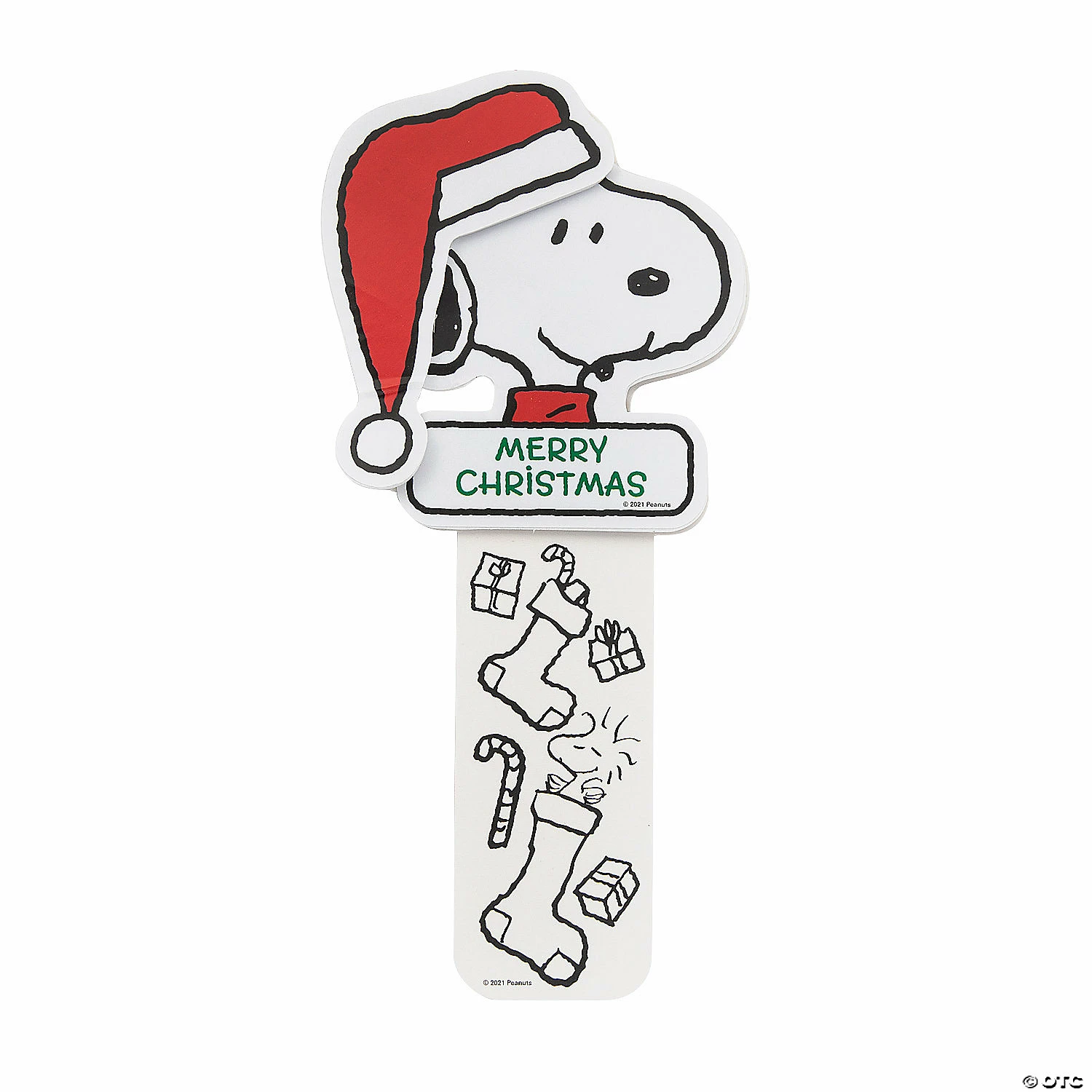 When youโre done reading for the day, good ole Snoopy is here to save your page! This Christmas bookmark craft is an easy classroom activity or holiday party activity. Kids will have fun coloring the stockings and presents and then assembling Snoopyโs Santa hat. Use it for marking where you left off in a coloring book or favorite novel. Includes self-adhesive foam pieces and cardstock. 3 1/2″ x 8″ Makes 12. All craft kit pieces are pre-packaged for individual use. Kits include instructions. Only at OTC / ยฉ 2021 Peanuts Worldwide LLC