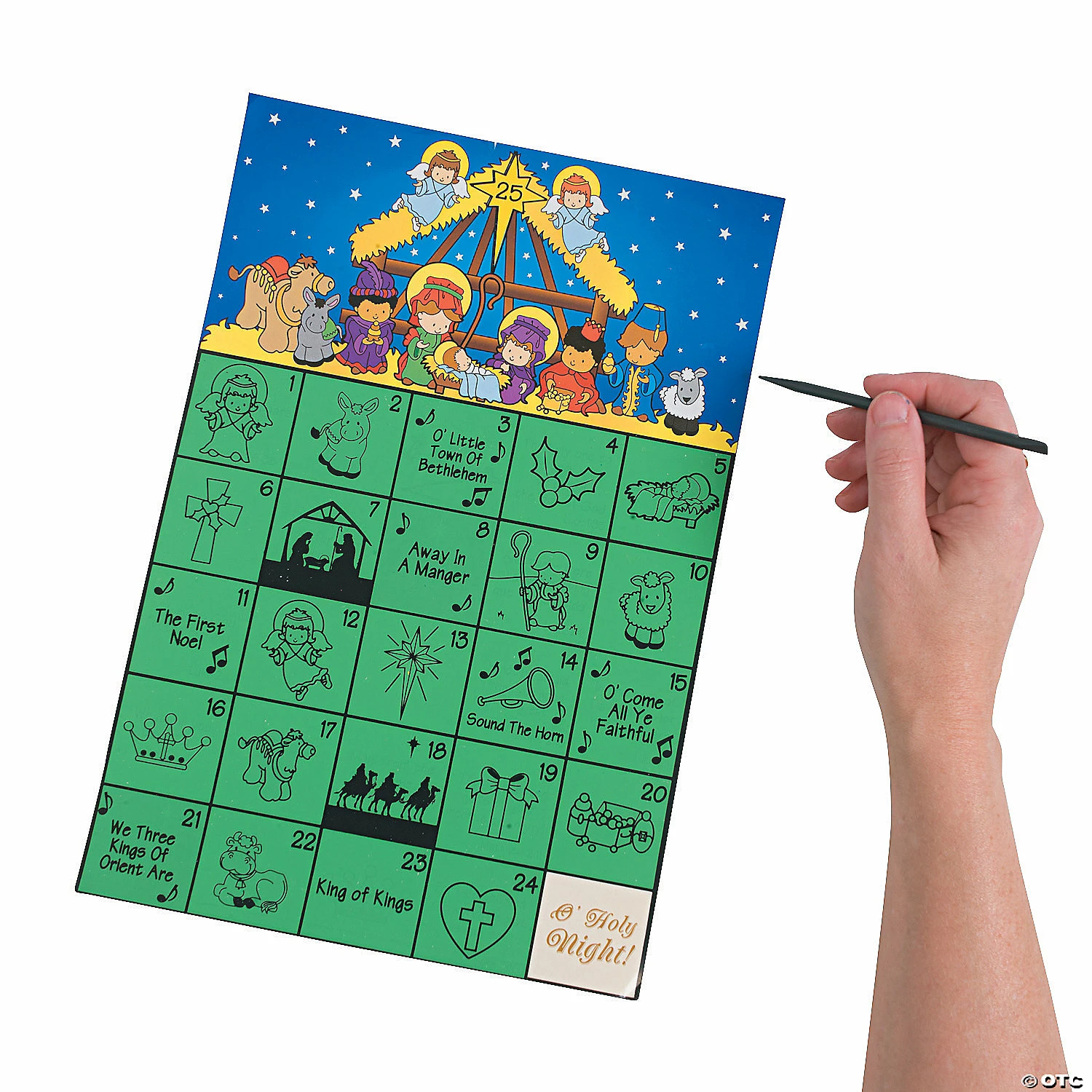 Scratch off a square each day of Advent to reveal a Christmas message or icon! Hand them out to your Sunday School class for a fun addition to your bible lessons. Keep browsing our site and more Christmas activities for kids! Includes scratching tools. Paper. (1 dozen per unit) 8 1/2″ x 12 1/2″ © OTC