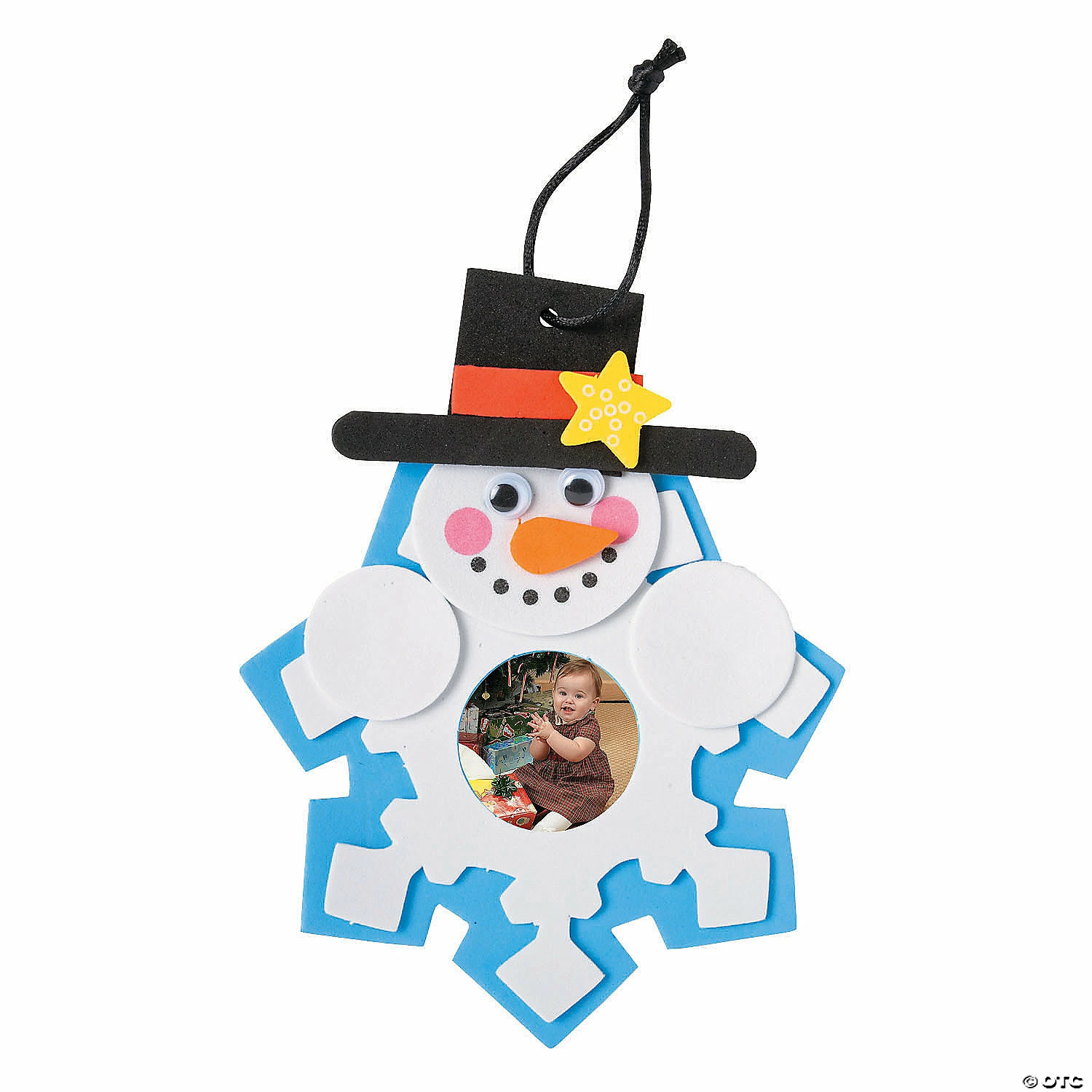 These snowmen have gotten in the wintry mix of this foam photo frame Christmas Ornament craft kit! Let this top hat-wearing frosty capture your holiday pictures for display! This easy-to-make project includes all the βflakesβ and pieces for building a merry tree-trimming decoration! Glue is required (sold separately). 6 1/2″ with a 1 1/2″ photo space. All craft kit pieces are pre-packaged for individual use. Kits include instructions. Β© OTC