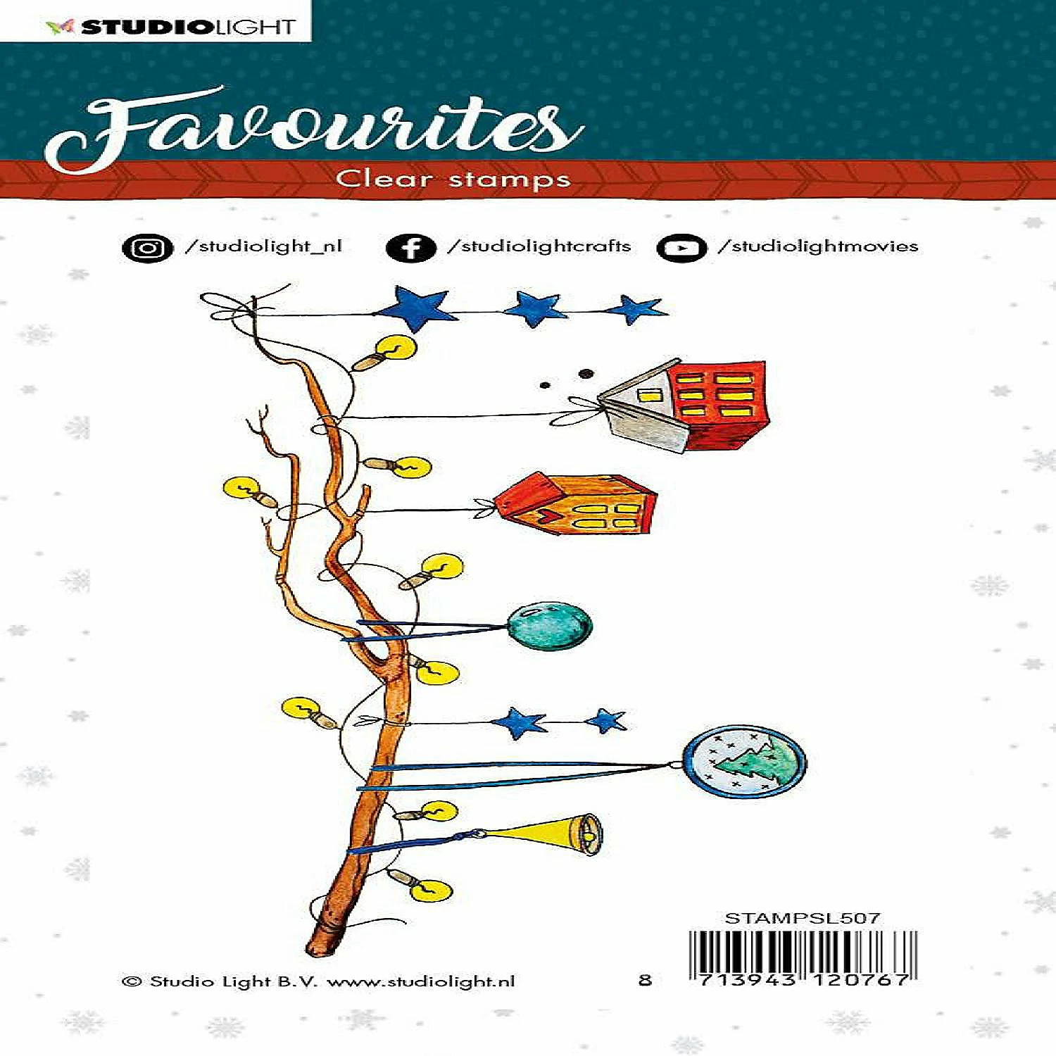Studio Light Clear Stamp Winter’s Favourites 105x148mm nr.507 A clear stamp set that features Christmas ornaments – baubles and lights that are great additions to your holiday cards. 4×6 inch stamp set.