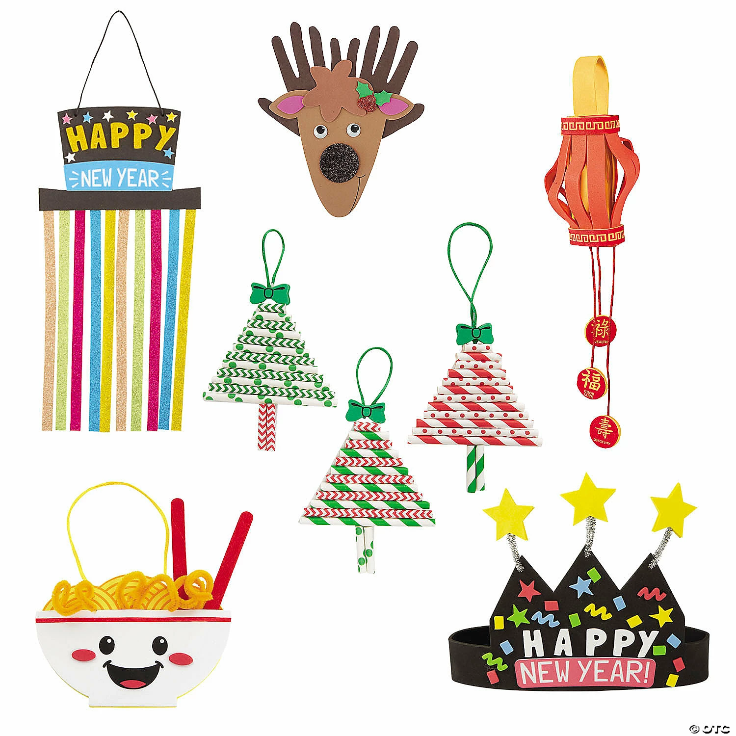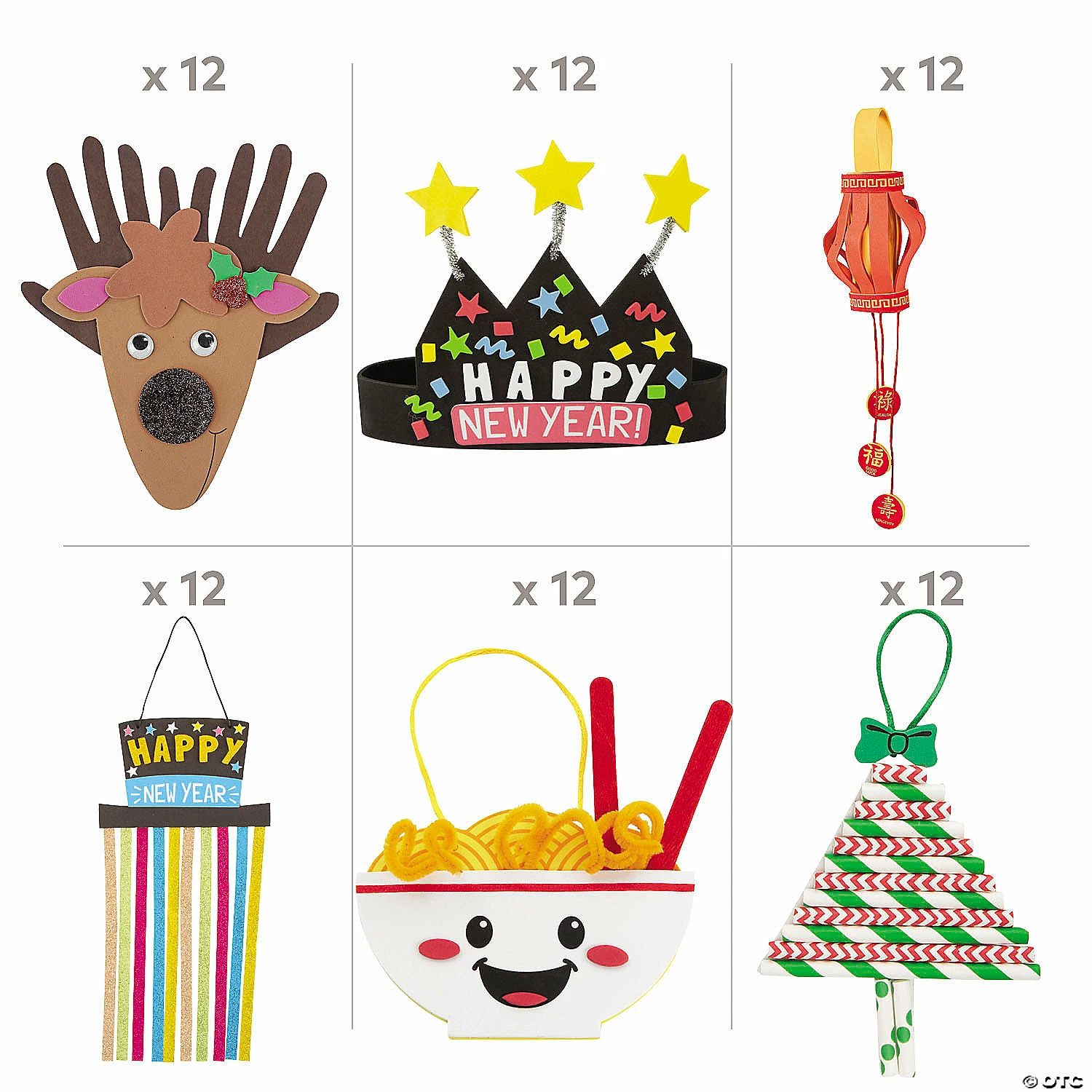 This kit will help keep the winter blues at bay while entertaining kids all day! This convenient kit is packed with an assortment of fun craft projects perfect for kids of all ages. Theyβre great activities for parties in the classroom or daycare that kids will love bringing home to display as holiday decorations! (72 pcs. per unit) All craft kit pieces are pre-packaged for individual use. Kits include instructions.Includes:β’ 12 Chinese New Year Good Fortune Lantern Craft Kits (Includes self-adhesive foam shapes and satin cord for hanging. 3″ x 5 1/2″)β’ 12 Chinese New Year Dragon Wooden Spoon Craft Kits (Includes wooden spoon, self-adhesive foam pieces, chenille stems and plastic googly eyes. 3 1/4″ x 11 3/4″)β’ 12 Dated New Yearβs Glasses Craft Kits (Includes self-adhesive foam and cardstock. 5 3/4″ x 5 3/4″ with 4 1/4″ ear pieces.)β’ 12 New Yearβs Glitter Hanging Sign Craft Kits (Includes glitter strips, self-adhesive foam pieces and satin cording. 7″ x 13 1/2″)β’ 12 Paper Straw Christmas Tree Ornament Craft Kits (Includes self-adhesive foam pieces, paper straws and satin cording. 4″ x 5″)β’ 12 Gingerbread Character Stand-Up Craft Kits (Includes self-adhesive foam pieces. 4″ x 2″ x 5″)β’ Assortments are subject to change at any time and may vary from picture shown. Substituted items will be similar in nature