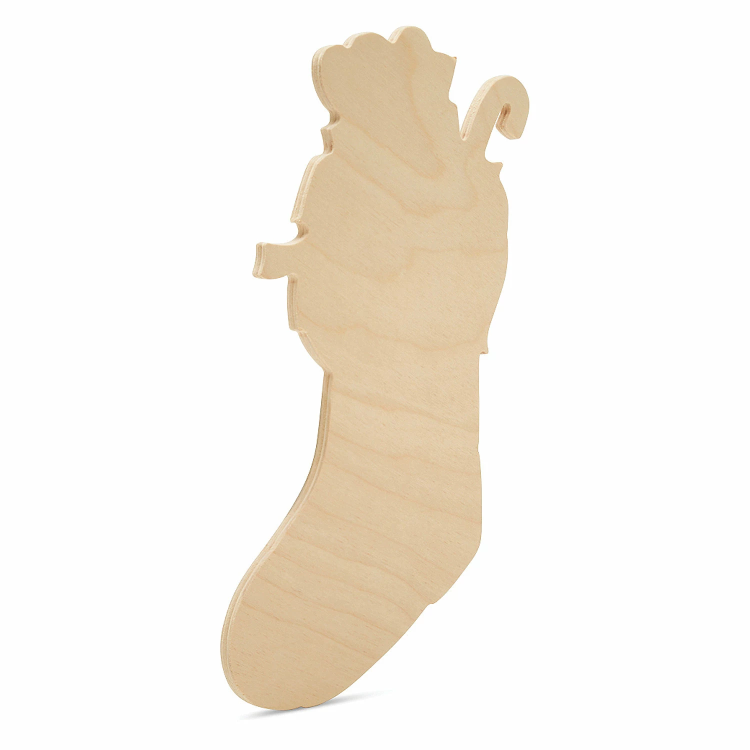 IS YOUR CHIMNEY ALL READY?- Dazzle up your fireplace with this stuffed stocking cutout. Our large unfinished wood cutout is 12” x 7-3/4” and ready to spread (gift?) the holiday cheer to all. Sized just right for door-hangers too!(Seal to make your Christmas door sign weather-proof.)