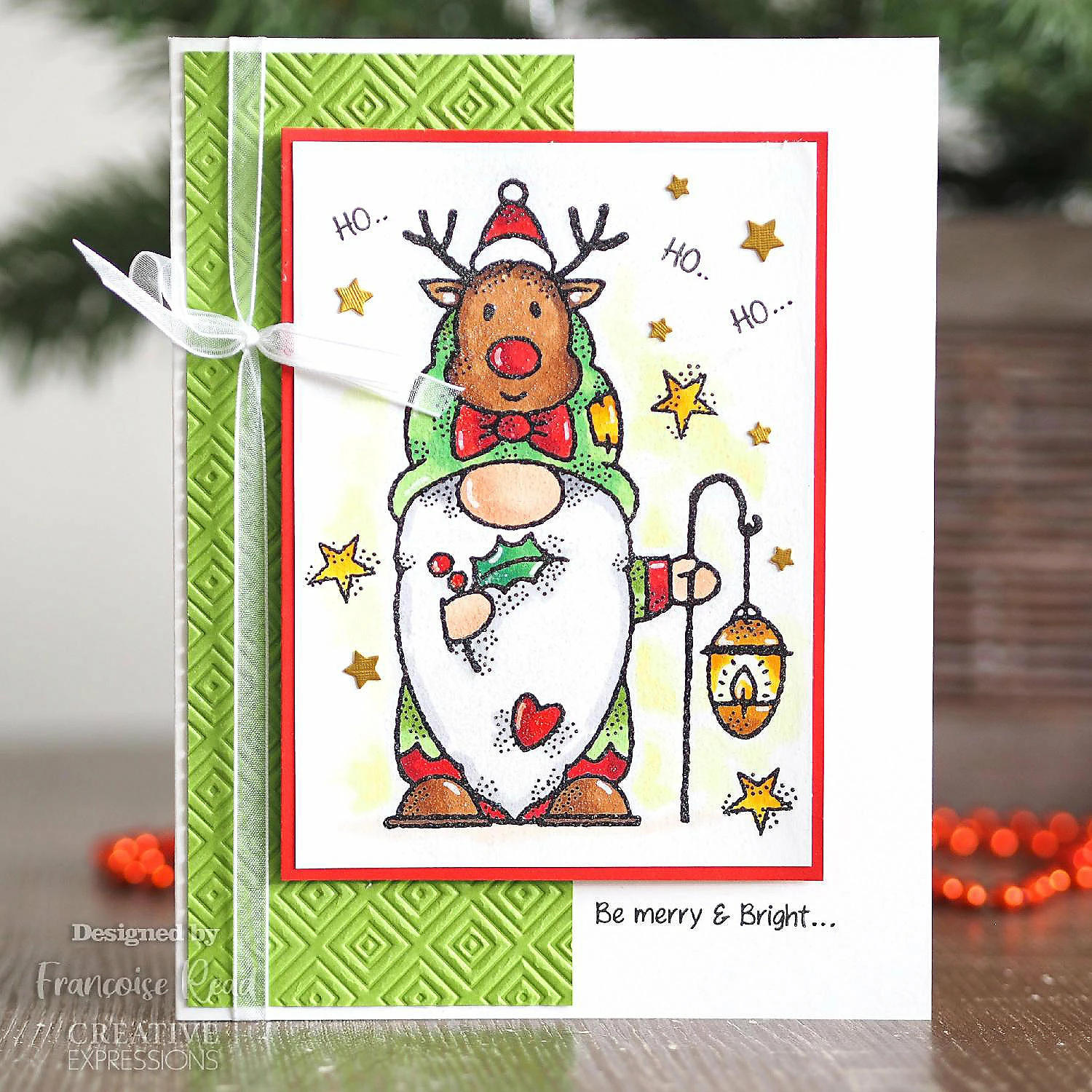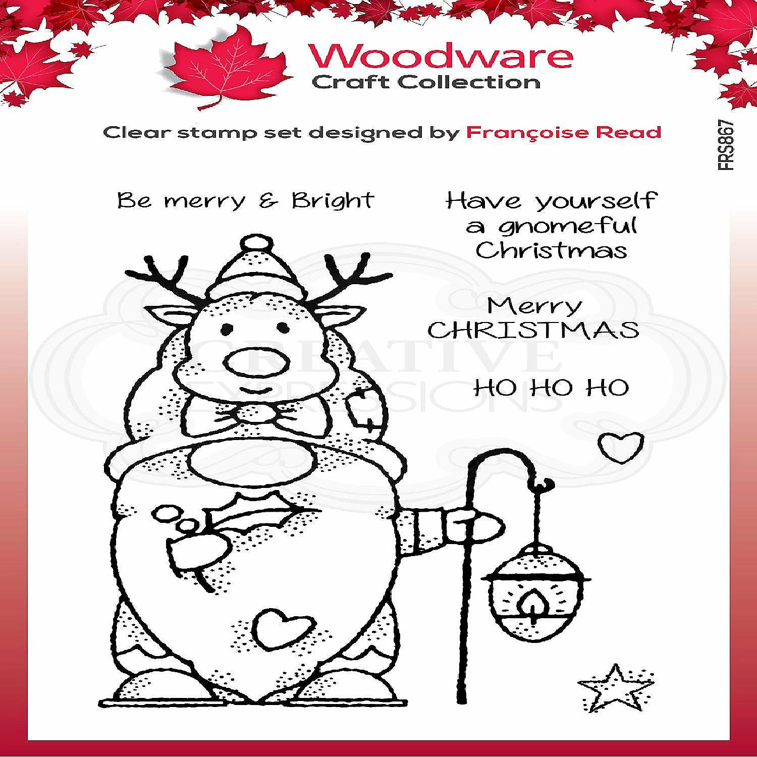 Woodware Clear Singles Reindeer Gnome 4 in x 6 in Stamp Fun gnome stamp has a fantastic reindeer hat! This large image is just calling out to be coloured or paper pieced. Designed by Francoise Read. These stamps would be perfect for cards and scrapbook pages as well as mixed media or Christmas dΓ©cor projects. Ready to mount on an acrylic block the stamps can be used with ink pads, paint, or used with pigment ink and embossing powder. They are suitable for use on paper, fabric, or any other surface depending on the ink choice. Designed and made in the United Kingdom. 15.25 x 10.15 cm (6 x 4-inch) β seven stamp set. β’ Designed by Francoise Readβ’ Perfect for colouring and even making into a tree decorationβ’ 6 x 4-inch seven stamp set
